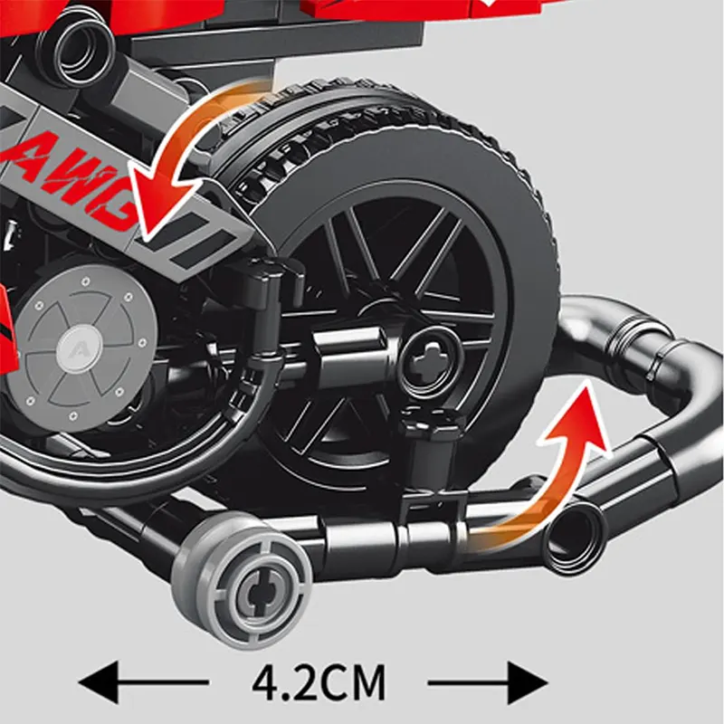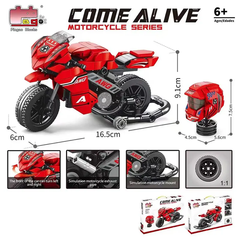لگو موتور سیکلت برای کودکانی که عاشق هیجان و مسابقه هستند یک هدیه فوق العاده است. این لگو موتور سیکلت شامل 400 قطعه است. قطعات موتور را به هم وصل کنید تا یک مسابقه هیجان انگیز را تجربه کنید. این لگو اسباب بازی برای کودکان بالای 6 سال مناسب میباشد. بازی و آموزش با لگو اسباب بازی که نوعی اسباب بازی ساختنی است، توانایی و مهارت های ذهنی کودکان را تقویت میکند و اوقات شاد و مفرحی را برایشان به ارمغان می آورد. خرید لگو موتور سیکلت، سورپرایزی عالی برای کودکانی که به اسباب بازی ساختنی علاقه دارند بهترین هدیه است همچنین با پایه ای که دارد به عنوان دکور اتاق کودک بسیار عالیست. لگو اسباب بازی سرگرمی مناسب برای بازی و تست هوش کودکان بالای 6 سال می باشد. قطعات لگو از پلاستیک با کیفیت و سازگار با محیط زیست ساخته شده است و دارای راهنمای ساخت میباشد .
