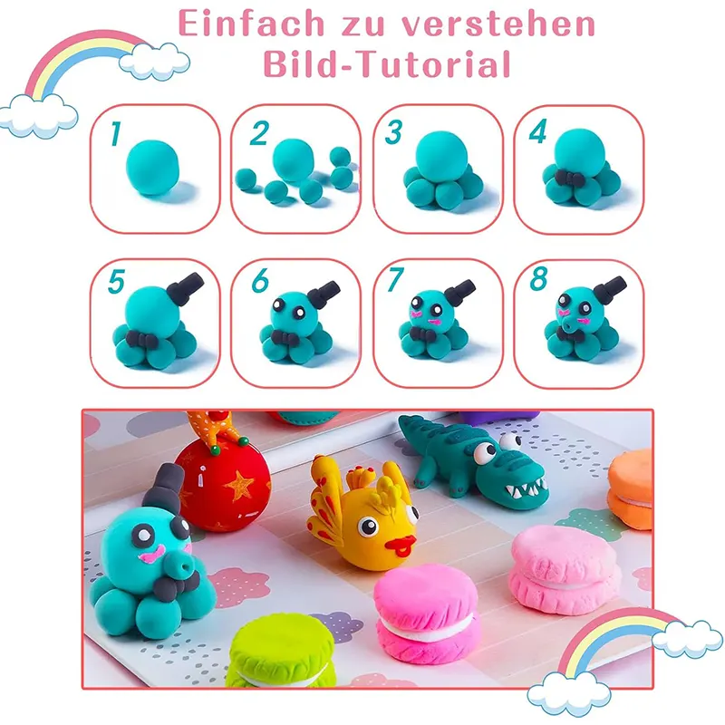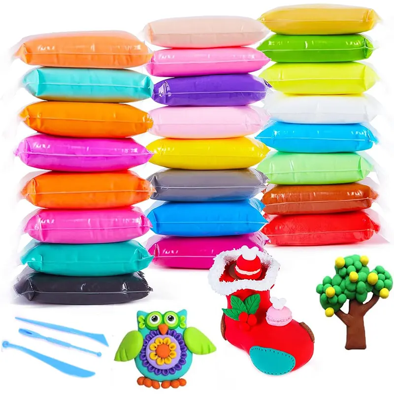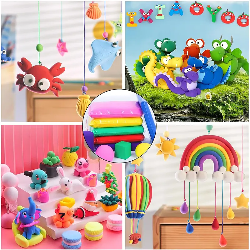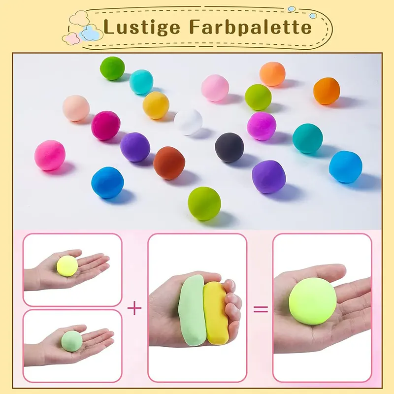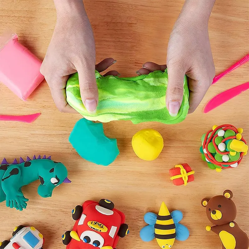 این خمیر اصلا حالت چسبندگی به دست نمیدهد و به راحتی با آب، نرم می شود و به سرعت از سطوح پاک می شود. استفاده از آن با ابزارهایی مانند چاقو پلاستیکی و 2 تجهیزات دیگری که در بسته قرار دارد آسان است. خمیر بازی 24 رنگ مختلف و زیبا دارد. خمیر بازی تنها در چند ساعت خشک می شود، بنابراین برای مجسمه سازی کودک گزینه مناسبی است. مواد سازنده این خمیر بازی سازگار با محیط زیست، غیر سمی، بی ضرر برای کودک است. این خمیر بسیار نرم و انعطاف پذیر و غیر چسبنده است و به دستان شما نمی چسبد. وقتی خشک و سفت می شود فوق العاده حالت کشسانی پیدا میکند.