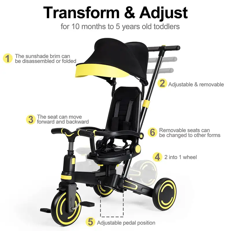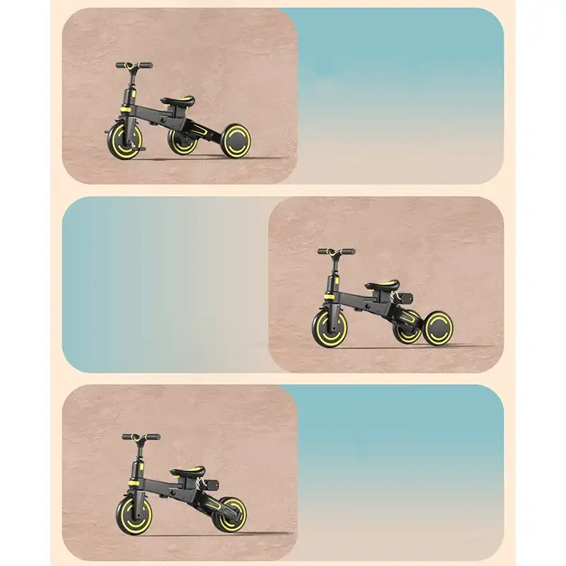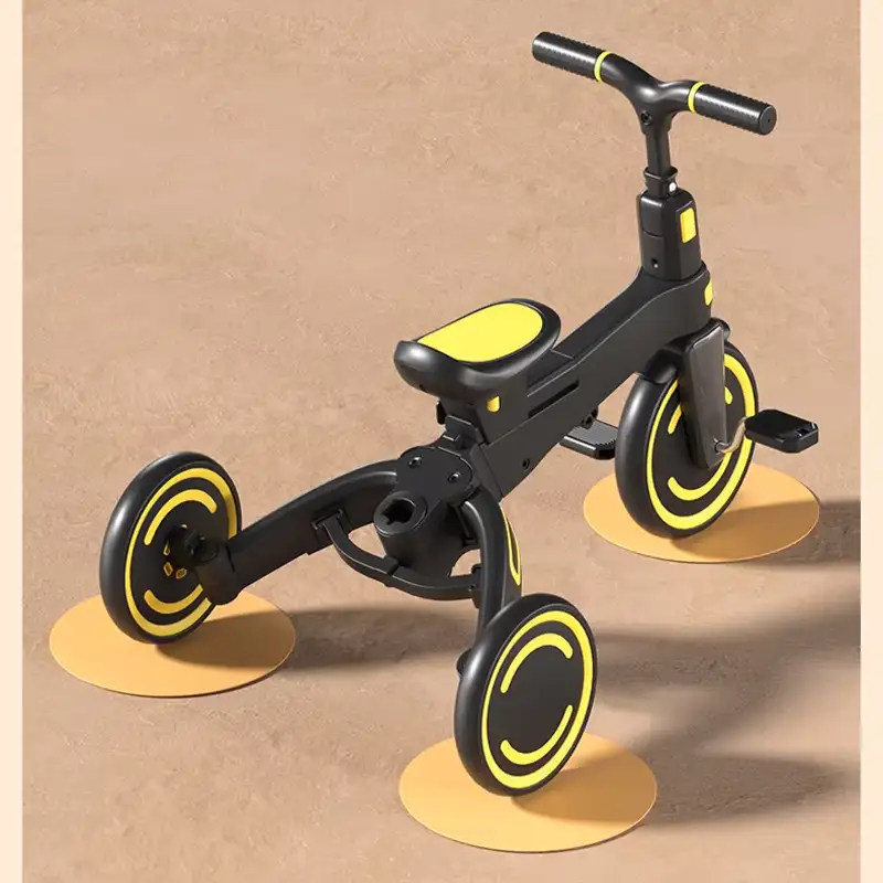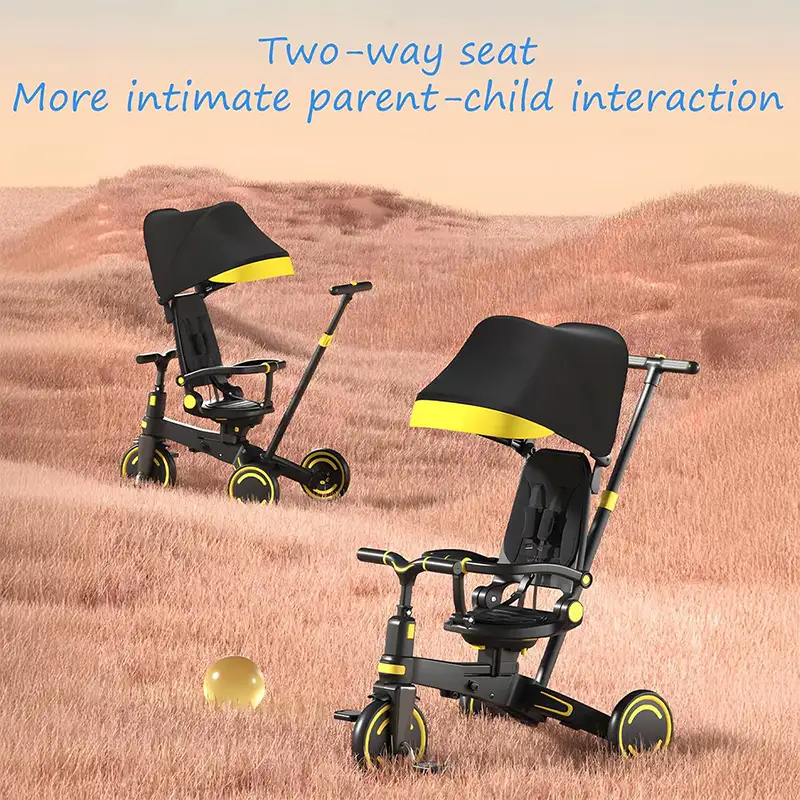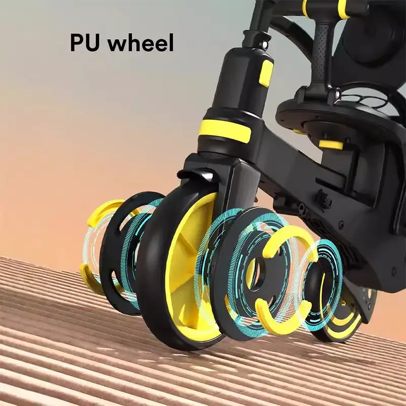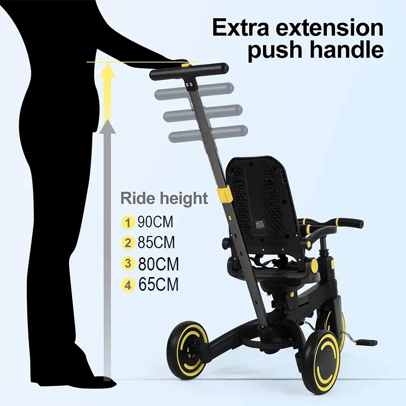 سه چرخه کودک جدید تنها با یک کلیک در چند ثانیه تا می شود و باز می شود و میتوان از آن در صندوق عقب ماشین و در کابین هواپیما قرار داد. این سه چرخه مسافرتی به عنوان کالسکه کودک نیز جایگزین مناسبی خواهد بود و تا 30 کیلوگرم تحمل وزن دارد. همانطور که میدانید با رکاب زدن عضلات کودک تقویت میشود. همچنین با خارج کردن پدال سه چرخه (زمانی که کودک توانایی کنترل سه چرخه را به تنهایی نداشته باشد) میتواند کنترل کامل سه چر را به دست بگیرید و با حرکت دسته کنترل سه چرخه را هدایت کنید. سه چرخه کودک قابلیت تنظیم پشتی صندلی را دارد و همچنین به دلیل داشتن کمربند با مهار 5 نقطه ای ایمنی کودک را حفظ میکند. این سه چرخه دارای یک جا پایی میانی است که هر زمان کودک احساس خستگی کرد پای خود را روی آن قرار دهد. سه چرخه کودک از پلیمرهای تقویتشده با الیاف درجه یک، چرخهای نرم بادوام، پروفیلهای فولادی ضد زنگ و دستههای چوبی، برای دوام طراحی شده است.