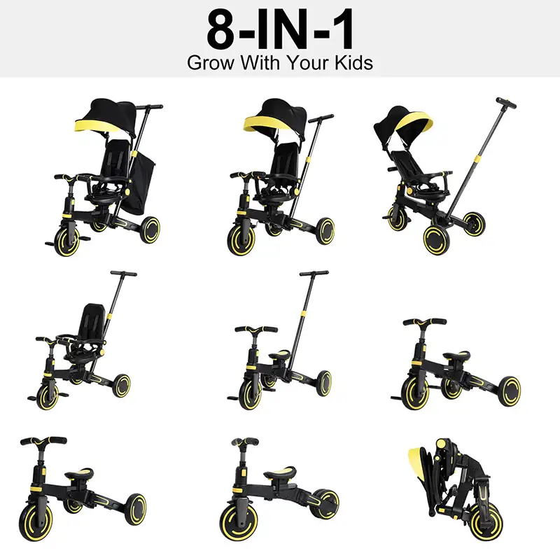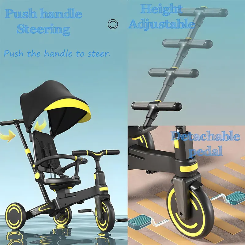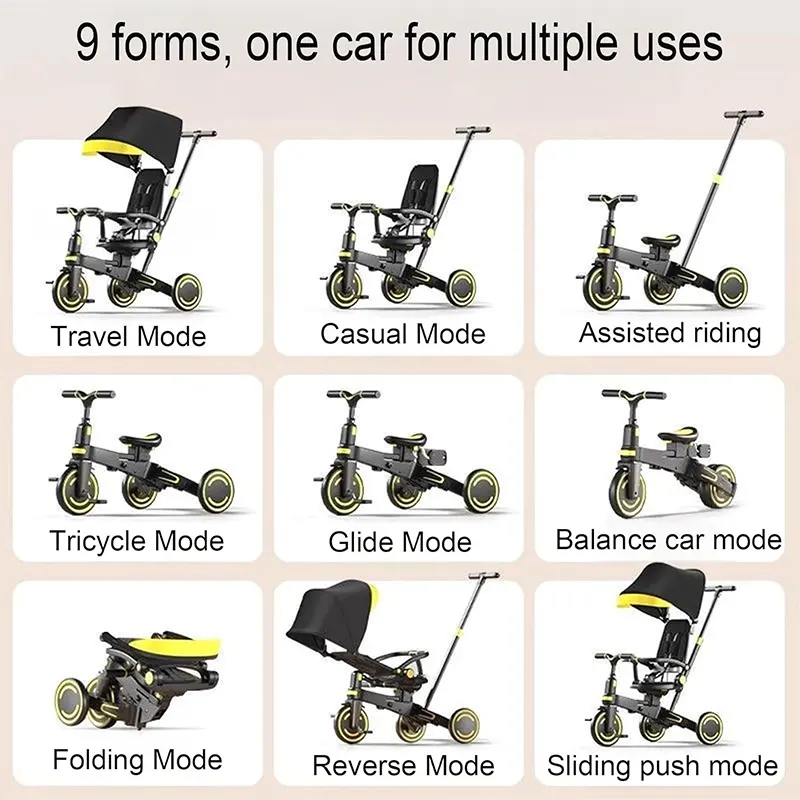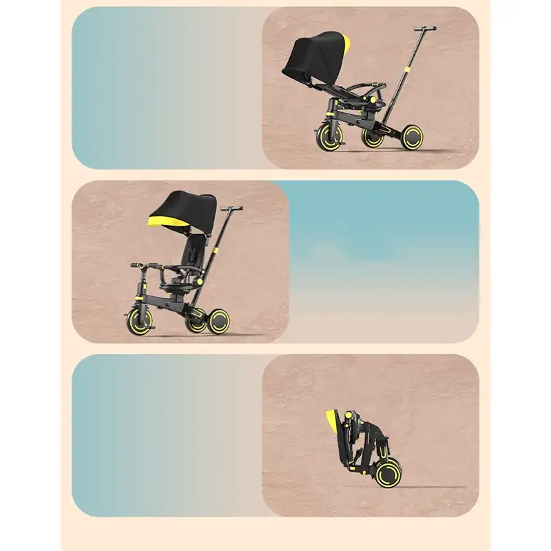 سه چرخه کودک تاشو رنگ طوسی یک سه چرخه جمع و جور و کاربردی است، جمع و جورترین سه چرخه تاشو، مناسب کابین هواپیما و سفر شما. سه چرخه کودک جدید یک سه چرخه کودک مناسب گروه سنی 18 ماه تا 5 سال است. از این سه چرخه بچه گانه میتوان در پنج حالت مختلف سه چرخه سابیان دار، بدون سایه، با دسته کنترل والدین، بدون دسته کنترل والدین، سه چرخه معمولی استفاده کرد. این سه چرخه به گونه ای طراحی شده است که با کودک شما رشد میکند.