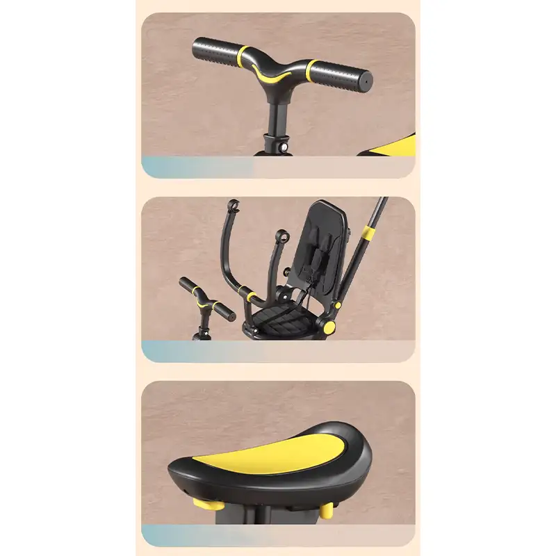 سه چرخه سایبان دار هم از پوست لطیف بچه ها در مقابل آفتاب و بارون محافظت میکنه و لذت بازی رو توی تابستون و زمستون چندین برابر میکنه. سه چرخه کودک از جنس بدنه پلاستیک فشرده ABS و دسته فلزی بسیار محکم هست ولی در عین حال بسیار سبکه و راه بردنش خیلی لذت بخشه. چرخ های ضد تعلیق و روان این سه چرخه بچه گانه به راحتی در جهات مختلف لرزش و ضربه را در حین حرکت کم کرده و گردش رو برای بچه ها و والدین به یاد موندنی تر میکند. چرخ های این سه چرخه از جنس پلی اورتان PU است و به همین دلیل دیگر نگران پنچر شدن و آسیب چرخ ها نباشید. شما میتوانید دسته کنترل والدین و تکیه گاه پشتی را مطابق با نیازهای فرزندتان تنظیم و بردارید. همچنین زمانی که سن کودک شما هنوز به حدی نرسیده که بتونه به تنهایی سه چرخه سواری کنه، میتونین از دسته کنترل والدین سه چرخه کودک استفاده کنین و فرزند دلبندتان را به گردش ببرید. با حرکت دسته ی مخصوص هدایت والدین، چرخ ها هم قابلیت تکان خوردن دارند. در حالت هدایت توسط والدین، پدال ها جدا میشود و بدون اینکه سه چرخه مسیرش منحرف شود میتوان با این سه چرخه کودک را کنترل کرد.