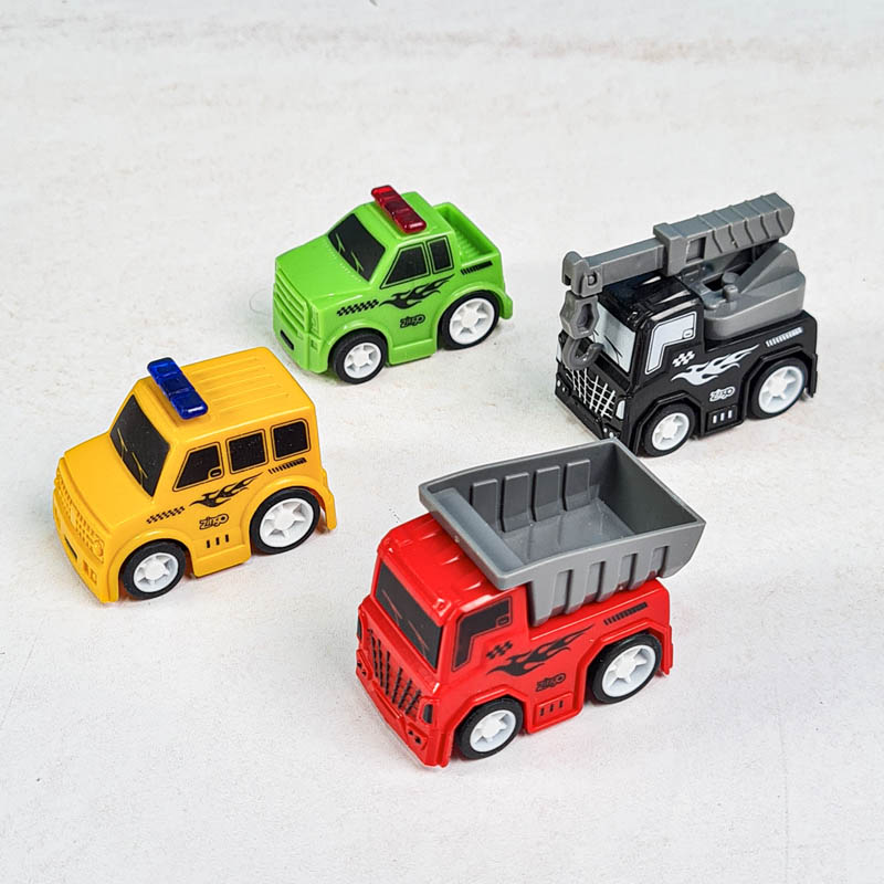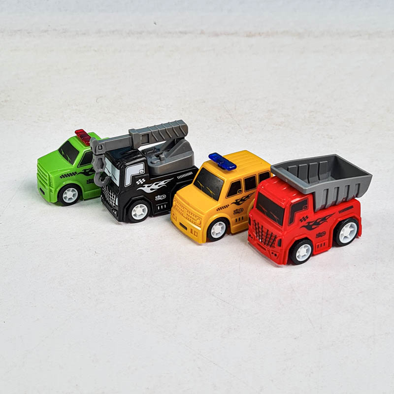 یک پک هیجان انگیز برای کوچولوهایی که عاشق ماشین بازی هستند. این ست ماشین پلاستیکی شامل 4 ماشین های راهسازی و امداد می باشد. این ست ماشین اسباب بازی قابلیت قدرتی دارد به این صورت که با هل دادن به جلو و عقب ماشین حرکت میکند. این ماشین های اسباب بازی دارای کیفیت قابل قبول و از جنس پلاستیک با کیفیت، رنگ های زیبا و هستند.