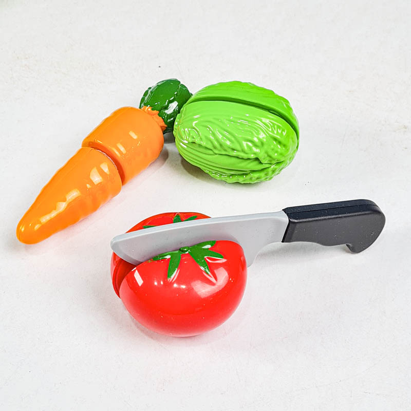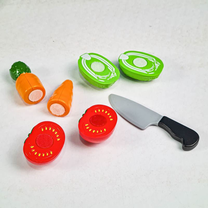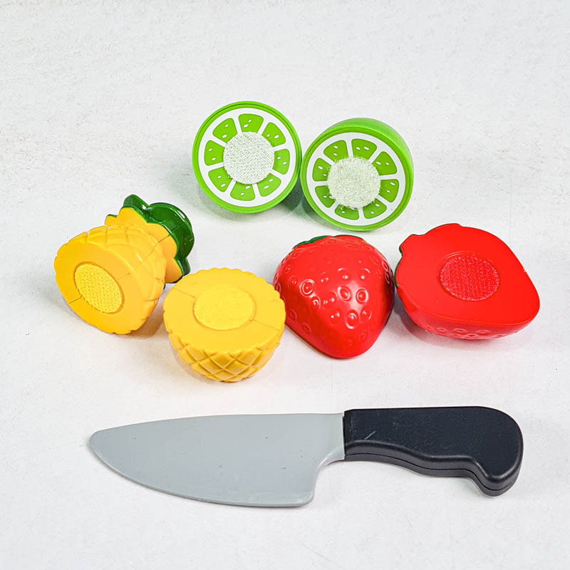 بفرمایید سالاد میوه یا سالاد سبزیجات! با استفاده از چاقوی پلاستیکی همراه محصول میوه ها را تکه تکه کنید تا یک سالاد جذاب داشته باشید. اسباب بازی ست برش میوه و سبزیجات داری 4 تکه و مناسب کودکان بالای 3 سال است.