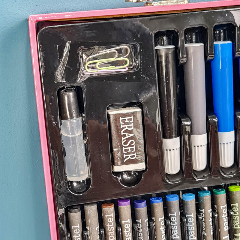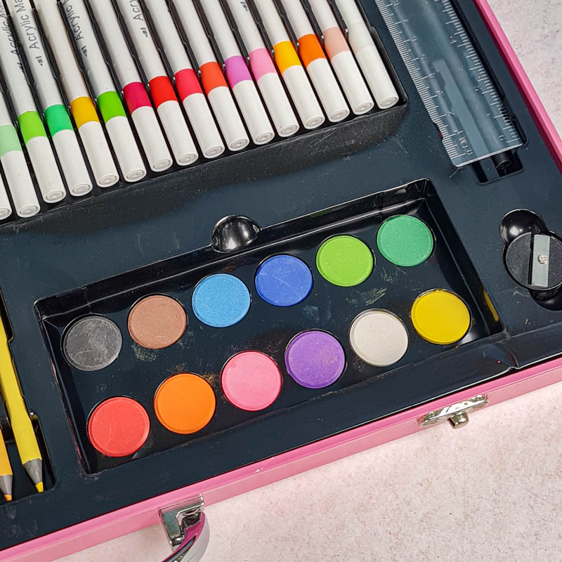 اگر کودک شما حتی علاقه اندکی به نقاشی و رنگ آمیزی داشته باشد، با مشاهده ی کیف نقاشی 180 تکه، علاقه اش چندین برابر خواهد شد و او را به یک هنرمند کوچولوی با استعداد تبدیل خواهد کرد.