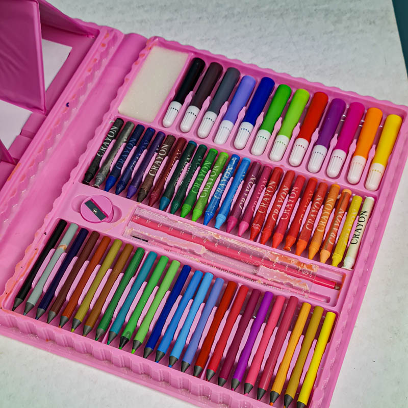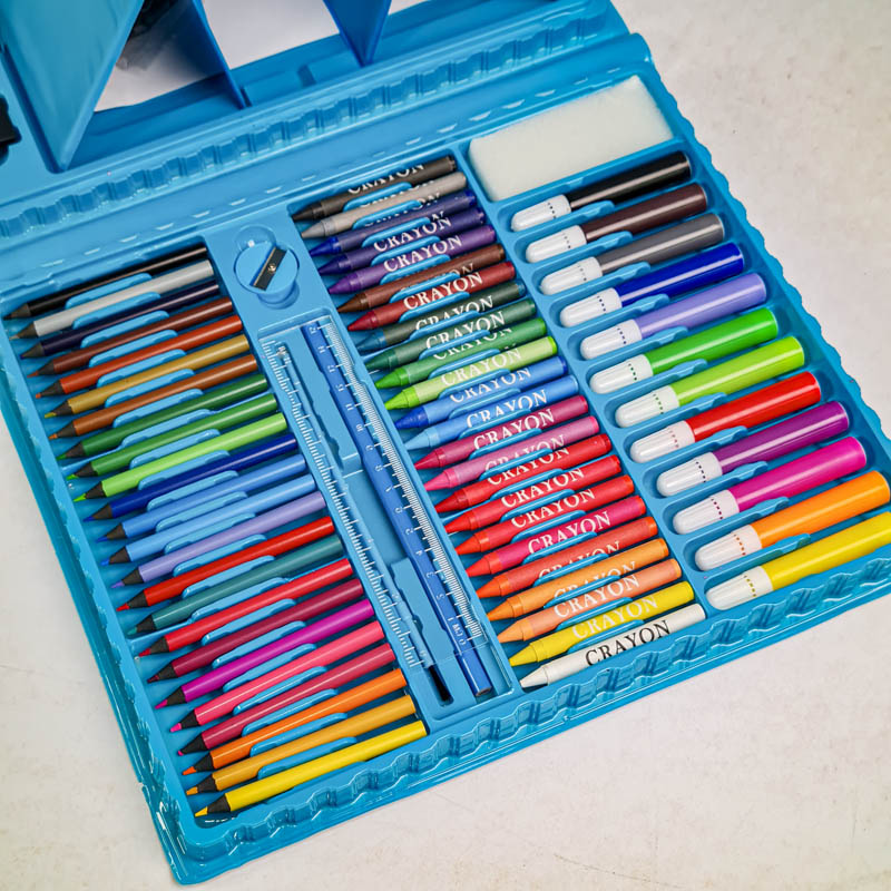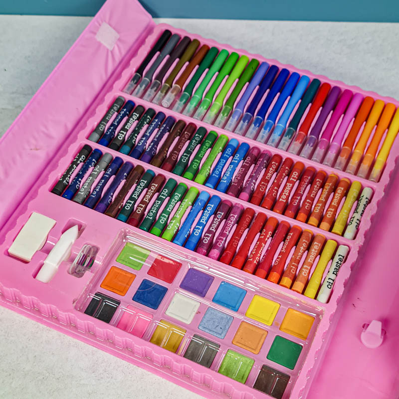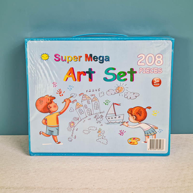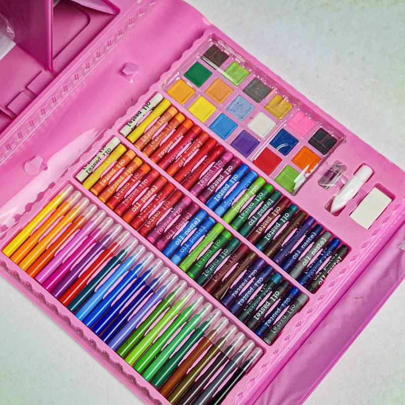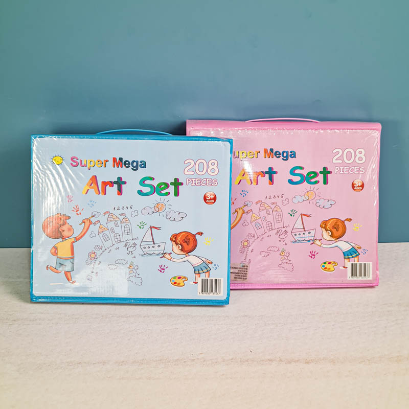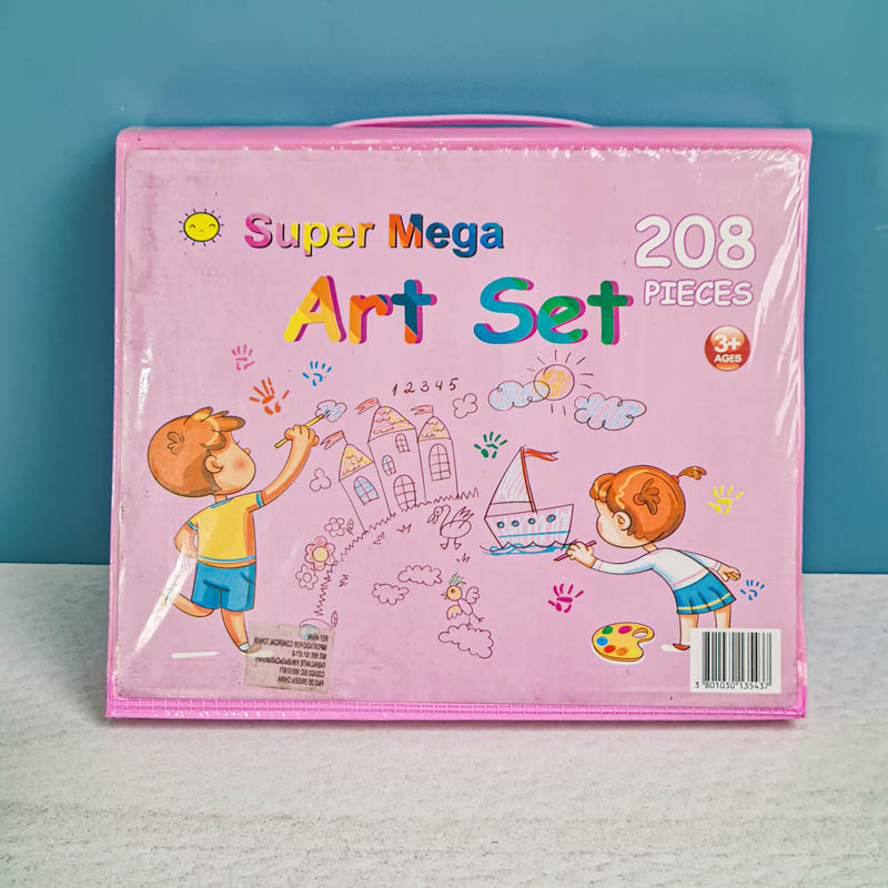 ست نقاشی 208 تکه شامل: 18 عدد آبرنگ، 72 عدد مداد شمعی، 36 عدد ماژیک، 24 عدد مداد رنگی، 4 عدد کلیپس، کاغذ، پاک کن و... می باشد. اگر کودک شما حتی علاقه اندکی به نقاشی و رنگ آمیزی داشته باشد، با مشاهده ی کیف نقاشی 208 تکه، علاقه اش چندین برابر خواهد شد و او را به یک هنرمند کوچولوی با استعداد تبدیل خواهد کرد.