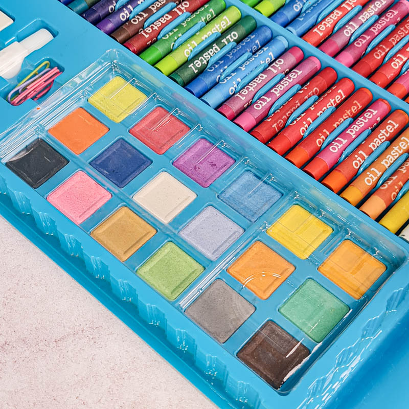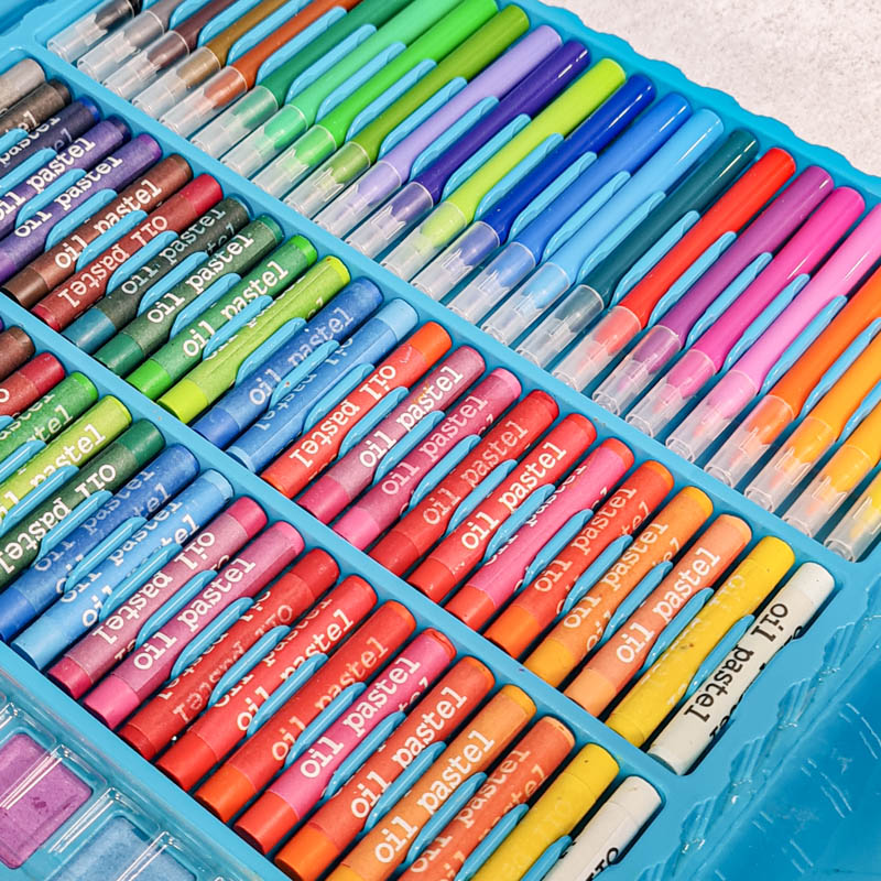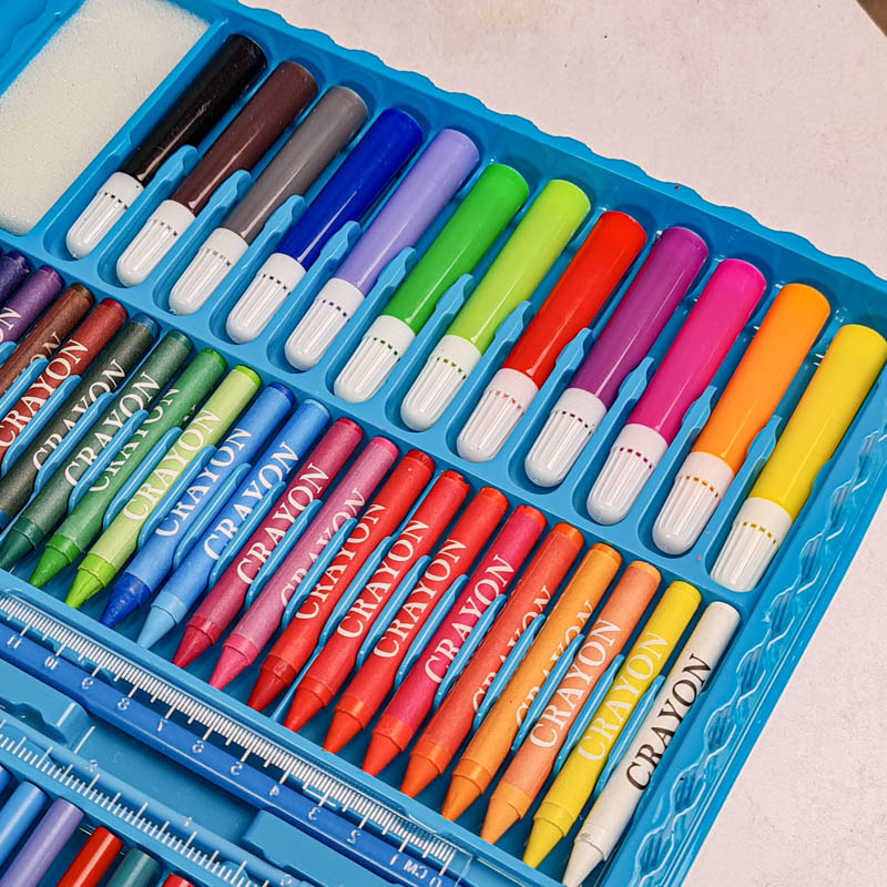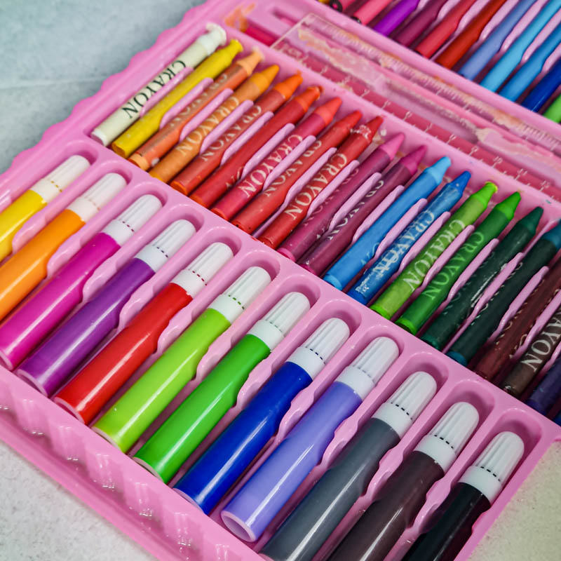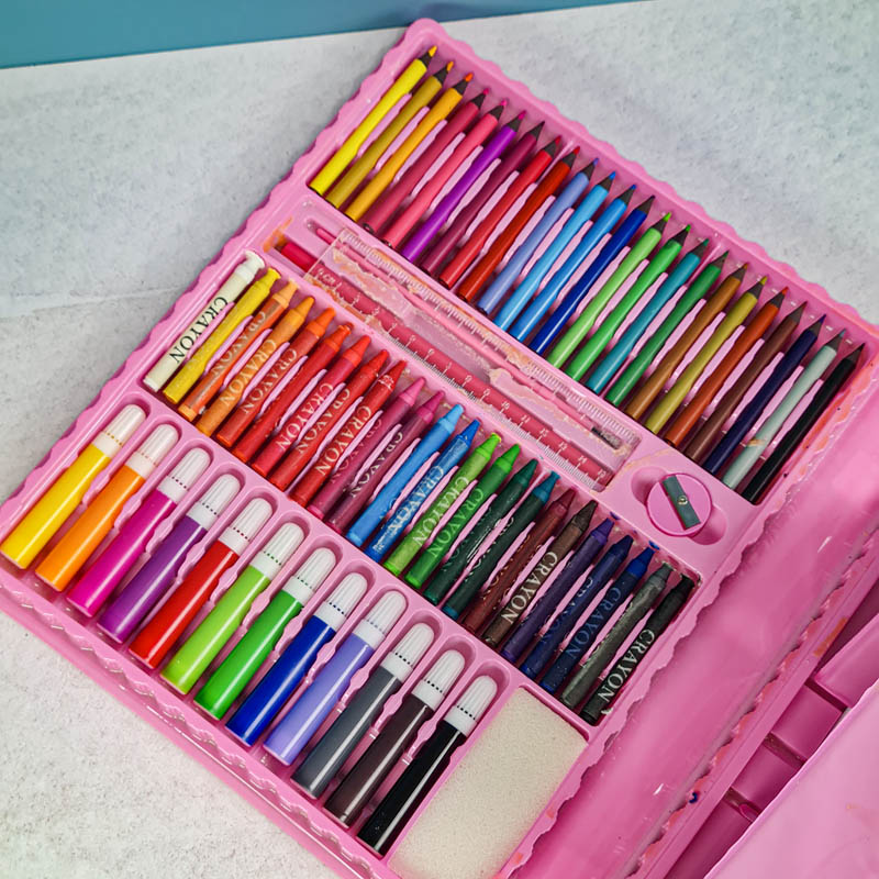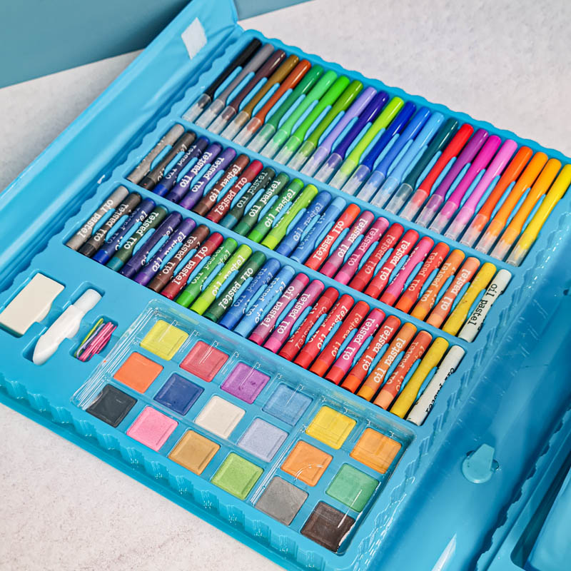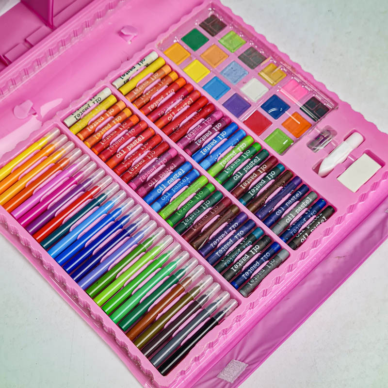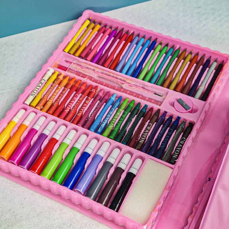 ست نقاشی 208 تکه شامل: 18 عدد آبرنگ، 72 عدد مداد شمعی، 36 عدد ماژیک، 24 عدد مداد رنگی، 4 عدد کلیپس، کاغذ، پاک کن و... می باشد. اگر کودک شما حتی علاقه اندکی به نقاشی و رنگ آمیزی داشته باشد، با مشاهده ی کیف نقاشی 208 تکه، علاقه اش چندین برابر خواهد شد و او را به یک هنرمند کوچولوی با استعداد تبدیل خواهد کرد.