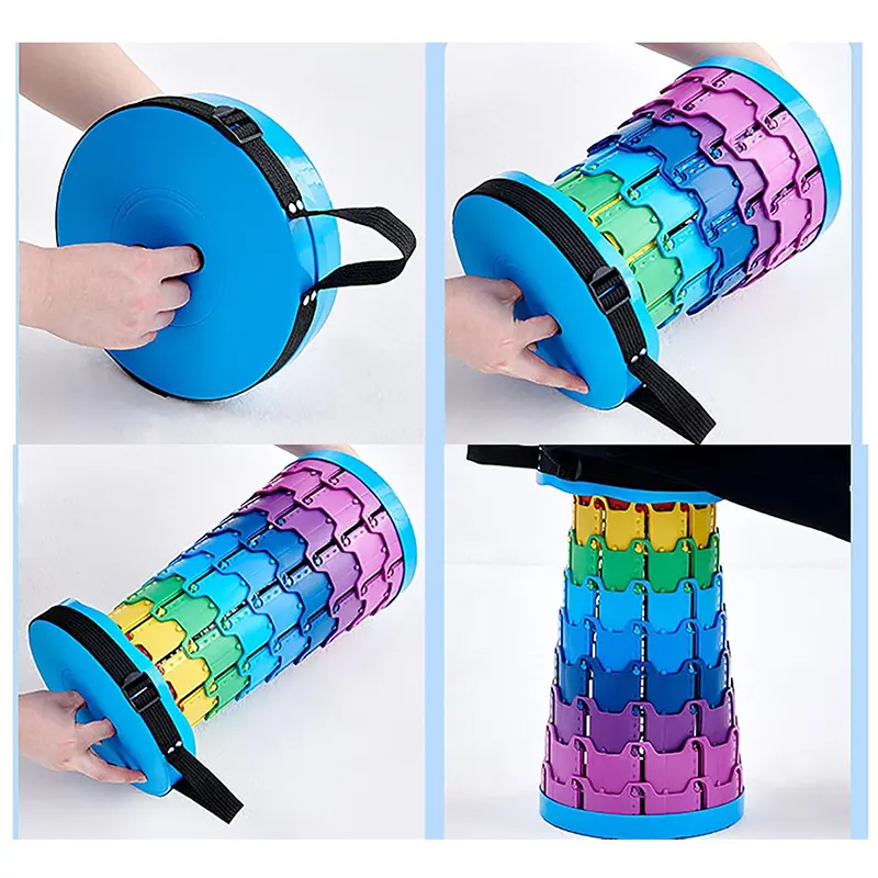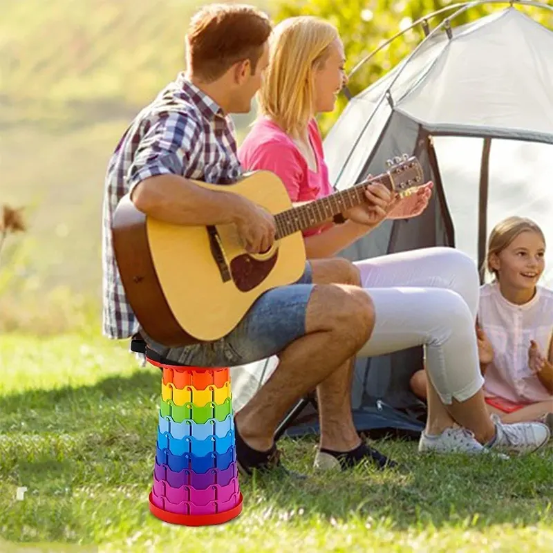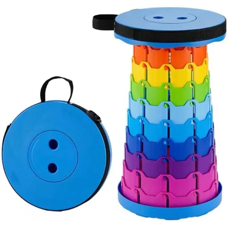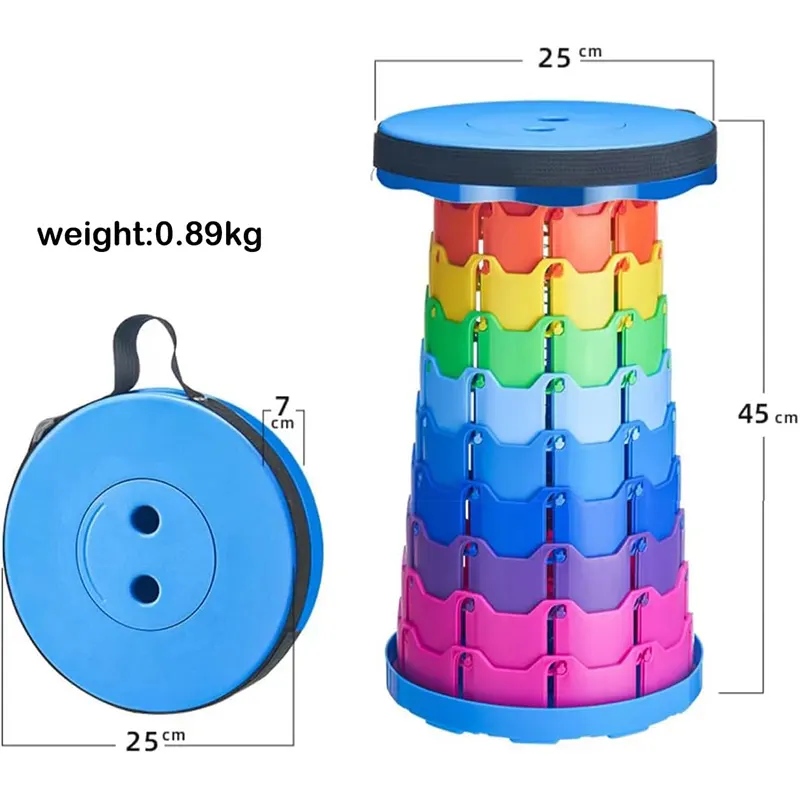 صندلی کمپینگ تاشو مدل تلسکوپی با وزن و حجم کم و با بندی شانه ای در سفر و کمپ همراه شماست. اگر اهل سفر هستید و نشستن روی زمین برای شما سخت است یا برای خوردن چای کنار جاده ایستاده اید و جای کافی برای حمل زیر انداز ندارید و نگران خیس شدن زیر انداز در کنار دریا و یا در روزهای بارانی هستید. حتما به این صندلی تاشو رنگین کمانی نیاز پیدا خواهید کرد. این صندلی با ارتفاع قابل تنظیم از حداقل 6 سانتی متر تا 44 سانتی متر و توانایی تحمل وزن 150 کیلوگرم یک صندلی بسیار کاربردی و جمع و جور است. میتوانید ارتفاع این صندلی را مطابق با نیاز خود تنظیم کنید. مناسب برای بزرگسالان و کودکان. ابعاد آن در حالت تاشده قطر 25 ارتفاع 7 سانتیمتر و در حالت صندلی کامل قطر نشیمن 25 ارتفاع 45 سانتی متر است. باز و بسته کردن آن تنها چند ثانیه طول میکشد. استفاده از آن در هر موقعیتی برای شما و خانوادهتان راحت است. صندلی تاشو رنگین کمانی ساخته شده از مواد ABS با کیفیت بالا، ضد خش، مقاوم در برابر رطوبت و سازگار با محیط زیست. این صندلی تلسکوپی کوچک میتواند تا 150 کیلوگرم را تحمل کند. با بست محکم، پایه ضد لغزش، طراحی شیک، مقاوم در برابر ضربه است و تجربه نشستن ایمن و راحت را فراهم میکند و به راحتی تغییر شکل نمیدهد.