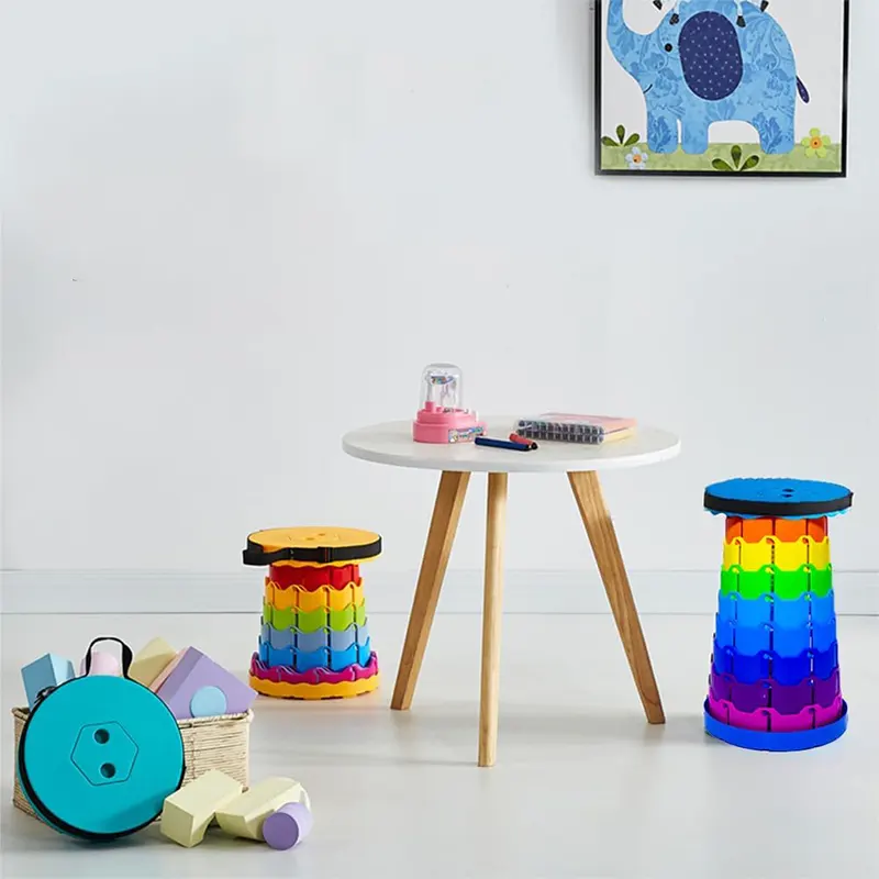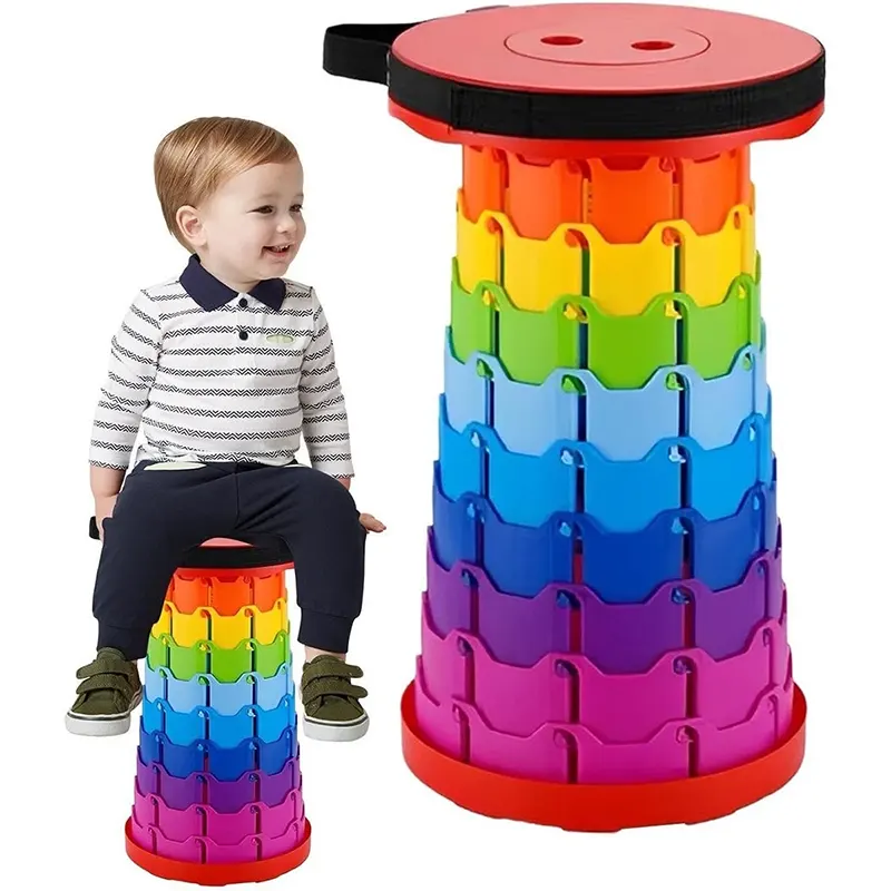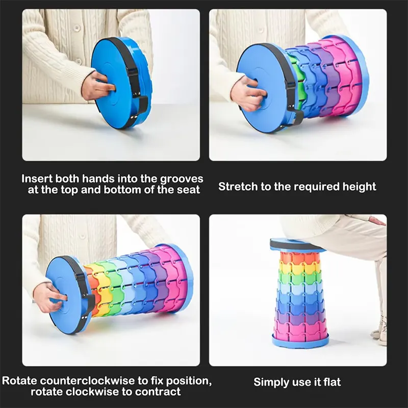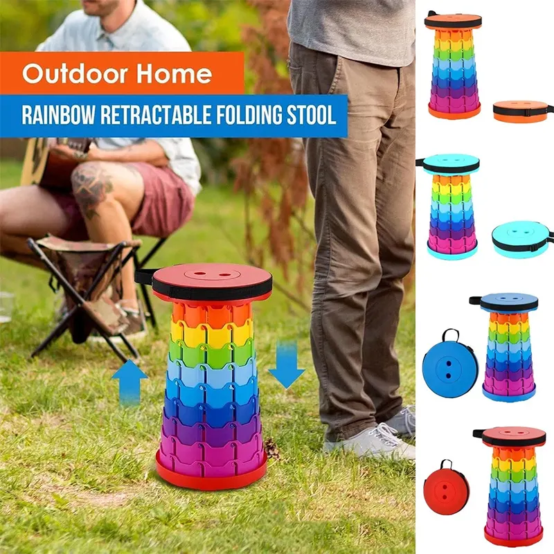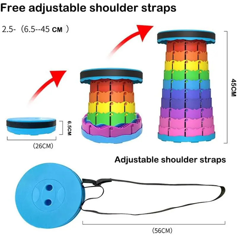 صندلی تاشو رنگین کمانی با بند دستی و بند شانهای طراحی شده است که حمل و نقل و جابجایی را برای بزرگسالان و کودکان راحت میکند. همچنین میتوانید صندلی را در کیف خودقرار دهید. صندلی تاشو رنگین کمانی ضد آب و قابل شستشو است. این وسیله با کمک بند دستی قابل آویزان شدن به میخ و یا هر مکانی نیز میباشد.