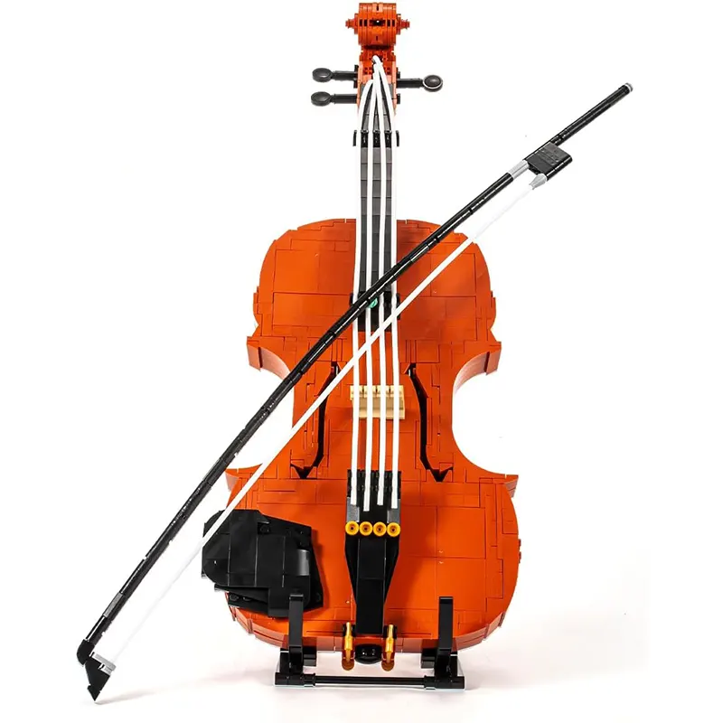 لگو ویولن 919 تکه کد 90025 یک لگو بینظیر و خاص برای علاقهمندان به ساخت لگو و کلکسیون داران و همچنین موزیسین ها فراهم میکند. شما می توانید این لگوی زیبا را در گوشه ای از میز کار یا خانه تان بگذارید و از دیدنش لذت ببرید. این لگو ویولن برای کلکسیونر ها و عاشقان لگو و حتی کسانی که ساز ویولن میزنند یک هدیه ی فوق العاده است! این ویولن لگویی از ساز ویولن واقعی الهام گرفته شده اند و زیبایی و جلوه ی خاص دارند. این مدل با دقت بسیار بالایی از روی یک ویولن واقعی الگوبرداری شده است. تمام اجزای کلیدی ویولن، از جمله بدنه، دسته، گوشیها (Pegs)، خرک (Bridge) و سیمها، با استفاده از قطعات ساختمانی به خوبی بازسازی شدهاند. تعداد قطعات بالا امکان ایجاد جزئیات دقیق و پیچیده را فراهم میکند. این امر باعث میشود مدل نهایی نه تنها شبیه به یک ویولن باشد، بلکه ظرافت و زیبایی آن را نیز منعکس کند.