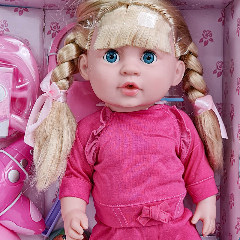 قد این عروسک دخترانه زیبا تقریبا 39 سانتی متر است و متشکل از یک عدد عروسک دخترانه با موهای زیبا، عروسک دخترانه با پیراهن، لیوان، سشوار، مسواک و خمیر دندان،ظرف غذا، قاشق، گارشو، شیشه شیر، پوشک، پیشبند و.... است. با فشار دادن شکم این عروسک دخترانه عروسک صداهای متنوعی مانند صدای گریه، صدای مامان و بابا و...پخش میشه و همین موضوع سبب می شود این اسباب بازی دخترانه بهترین هدیه برای کوچولوها باشد. تمامی اجزای این محصول از پلاستیک ABS (پلاستیک زیست محیطی) ساخته شده است که فاقد هرگونه مواد مضر و رنگ شیمیایی است و برای سلامت کودکان خطری ایجاد نمیکند و بدن آن حالت نرم دارد.