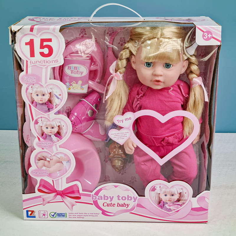 شما میتونید موهای عروسکتون رو شونه کنید و هر مدلی که دوست دارید ببندید. توی شیشه شیر مقدار مناسبی آب بریزید و شیشه شیر رو در دهان عروسک قرار بدید و شیشه رو فشار دهید به این صورت عروسک شیر میخوره. همچنین میتونید به عروسک با ظرف و قاشق مخصوص غذا بدید. این عروسک یک پوشک همراهش داره همچنین با نشوندنش روی گارشو عروسکتون شروع به جیش کردن میکنه. این عروسک دخترانه اولین و بهترین دوست کوچولوی شما در تمام سنین میشه. چشمهای آبی متحرک و چهرهای دوستداشتنی دل هر دختر کوچولویی را می برد. با کمک این عروسک جیشی اشتها کوچولوها بیشتر شده و با کمک آن میتونین به اونها آموزش بدید که چگونه از گارشو استفاده کنند. خواهر و برادرهای بزرگتر با تمرین می توانند یاد بگیرند که از خواهر ها و برادرهای کوچولوشون مراقبت کنند.