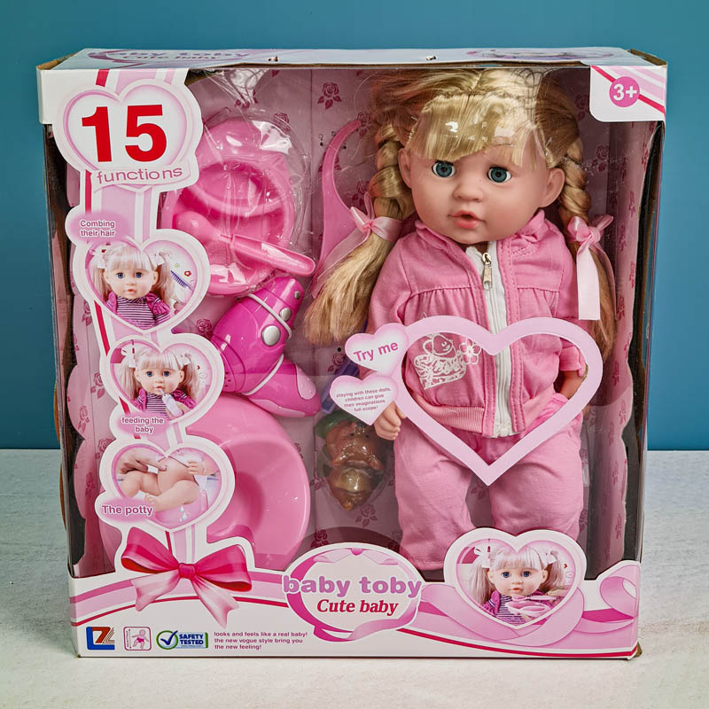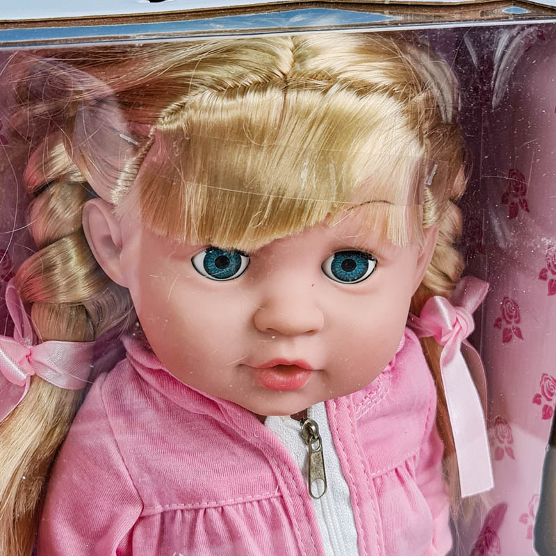 قد این عروسک دخترانه زیبا تقریبا 39 سانتی متر است و متشکل از یک عدد عروسک دخترانه با موهای زیبا، عروسک دخترانه با پیراهن، لیوان، سشوار، مسواک و خمیر دندان،ظرف غذا، قاشق، گارشو، شیشه شیر، پوشک، پیشبند و.... است. با فشار دادن شکم این عروسک دخترانه عروسک صداهای متنوعی مانند صدای گریه، صدای مامان و بابا و...پخش میشه و همین موضوع سبب می شود این اسباب بازی دخترانه بهترین هدیه برای کوچولوها باشد. تمامی اجزای این محصول از پلاستیک ABS (پلاستیک زیست محیطی) ساخته شده است که فاقد هرگونه مواد مضر و رنگ شیمیایی است و برای سلامت کودکان خطری ایجاد نمیکند و بدن آن حالت نرم دارد.
