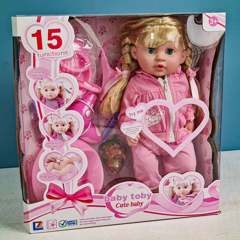 شما میتونید موهای عروسکتون رو شونه کنید و هر مدلی که دوست دارید ببندید. توی شیشه شیر مقدار مناسبی آب بریزید و شیشه شیر رو در دهان عروسک قرار بدید و شیشه رو فشار دهید به این صورت عروسک شیر میخوره. همچنین میتونید به عروسک با ظرف و قاشق مخصوص غذا بدید. این عروسک یک پوشک همراهش داره همچنین با نشوندنش روی گارشو عروسکتون شروع به جیش کردن میکنه. این عروسک دخترانه اولین و بهترین دوست کوچولوی شما در تمام سنین میشه. چشمهای آبی متحرک و چهرهای دوستداشتنی دل هر دختر کوچولویی را می برد. با کمک این عروسک جیشی اشتها کوچولوها بیشتر شده و با کمک آن میتونین به اونها آموزش بدید که چگونه از گارشو استفاده کنند. خواهر و برادرهای بزرگتر با تمرین می توانند یاد بگیرند که از خواهر ها و برادرهای کوچولوشون مراقبت کنند.