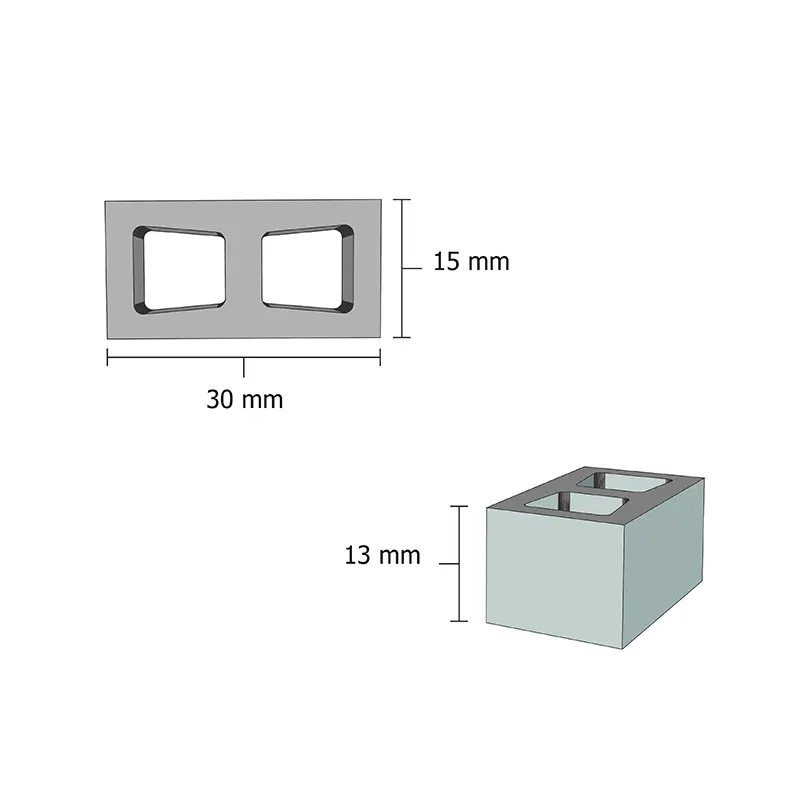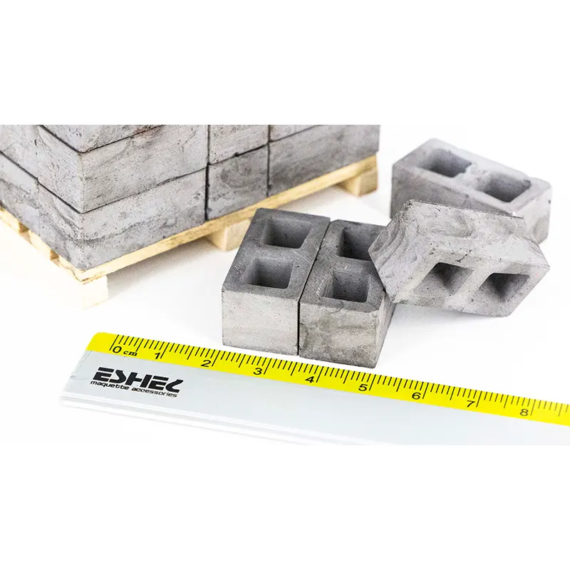 هدف از اسباب بازی های ساختمان سازی در مقیاس کوچک با اجزا متنوع و مصالح مشابه واقعی می باشد. شکل و جنس اجزا به گونه ای است که استفاده از آنها، حس کار با مصالح و اجزای ساختمانی واقعی را بوجود می آورد. بلوک سیمانی فله ای 100 قطعه ای اشل طوسی ESHEL شامل 100 عدد از سری محصولات معماری و ساختمان سازی برای کودکان 8 سال می باشد که دارای مقیاس 1:12 و ابعاد 3*1.5*1.3 سانتیمتر است.