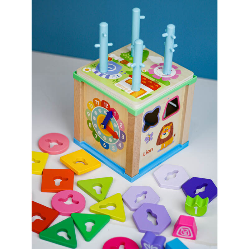 اسباب بازی مکعب هوش به سرعت توجه بچه ها را به خود جلب می کند و در طول زمان بازی، سرگرمی بیشتری را برای آنها به ارمغان می آورد. هر سمت از این مکعب دارای بازی هایی هست که موجب تقویت هوش، مهارت های ذهنی و فیزیکی بچه ها میشه. داشتن بازی هایی شامل پازل جایگذاری، اسباب بازی آموزشی ساعت، اسباب بازی میله و مهره، بازی ماز این اسباب بازی رو به یکی از جذاب ترین سرگرمی های بچه ها تبدیل کرده است. مکعب هوش کودک یک اسباب بازی با چند بازی است تا کودک شما بتواند آموزش بیشتری ببیند. مکعب هوش چند منظوره به نوزادان و کودکان نوپا این امکان را می دهد که برای مدت طولانی با خود مشغول بازی شوند. همچنین این مکعب هوش دارای سطوح صاف، طراحی لبههای گرد و مقاوم در برابر ضربه قوی و سازگار با محیط زیست میباشد و همچنین غیر سمی است.