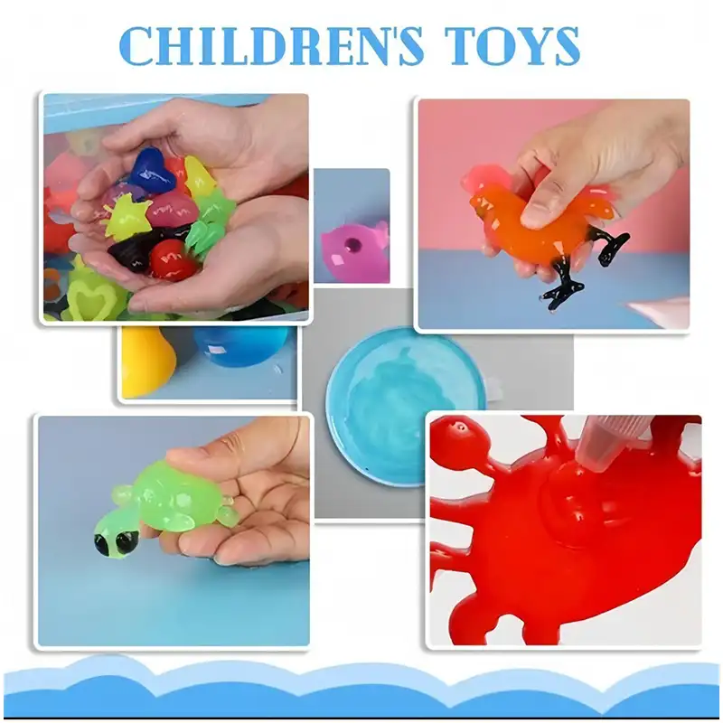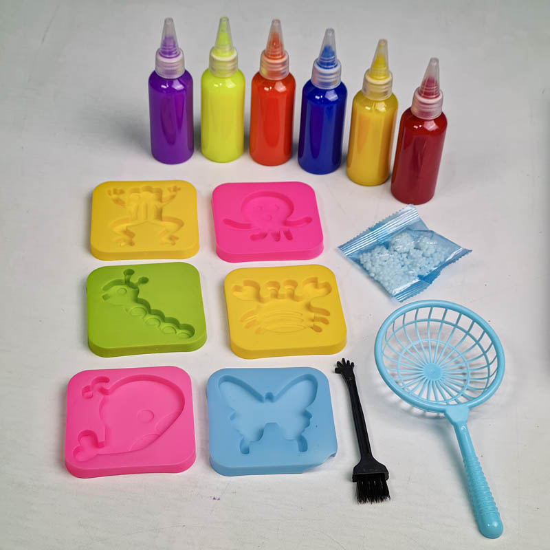 این اشکال را به مدت 3-4 ساعت در آب جادویی بگذارید تا به طور کامل سفت شوند. پس از انعقاد کامل، بچه ها می توانند با آنها روی دست بازی کنند. از دست زدن به چشم پس از تماس با محصول خودداری شود. مراقب کودکان باشید تا این محصول را به دهان نبرند.این محصول خوراکی نیست!