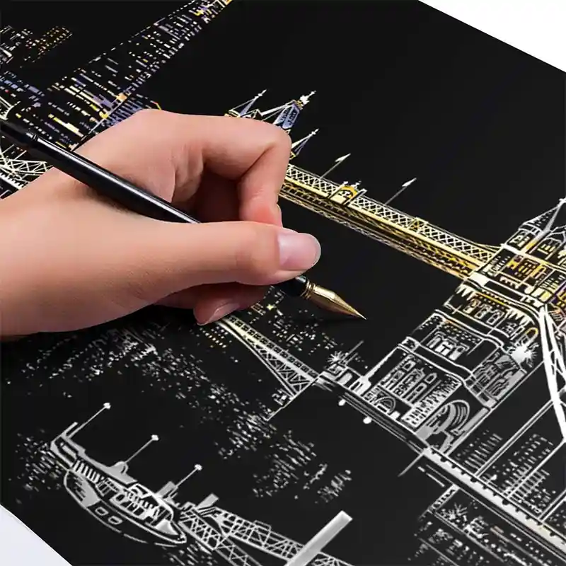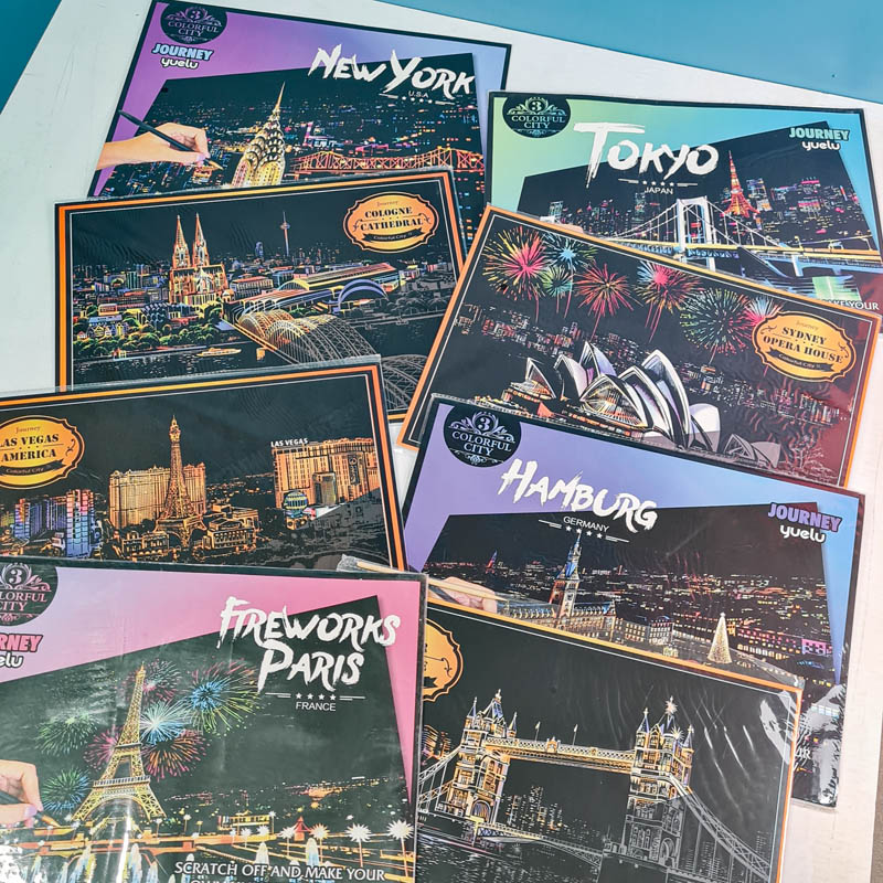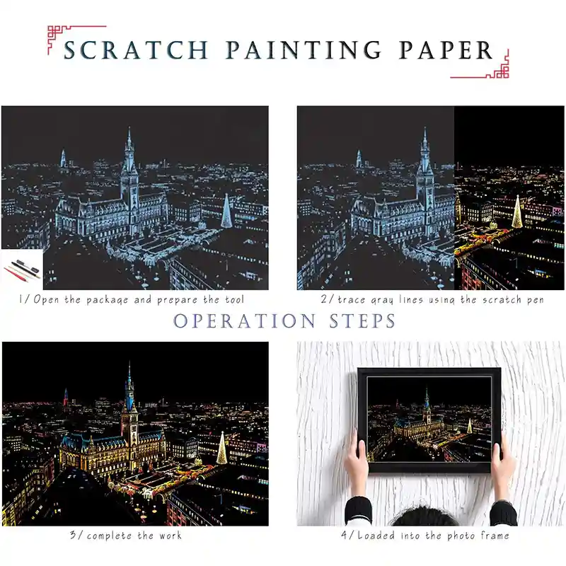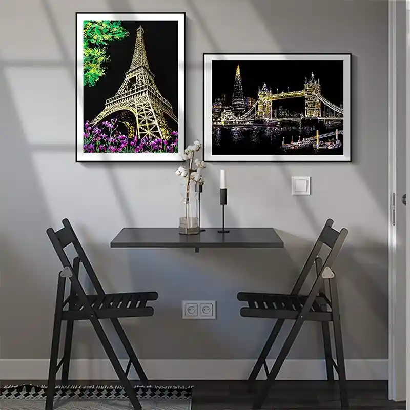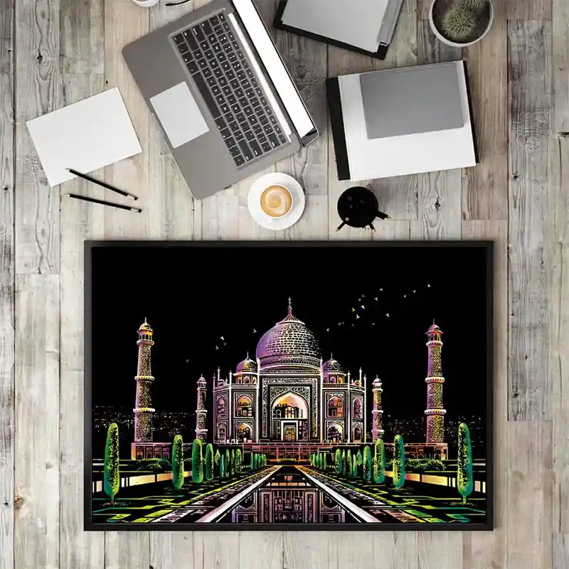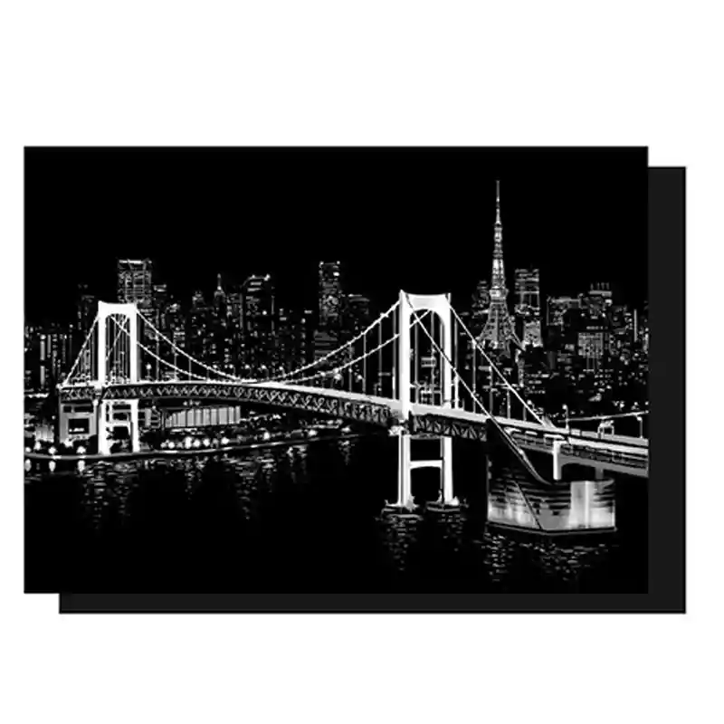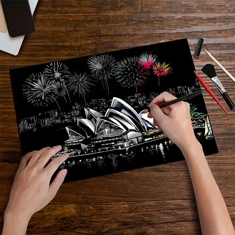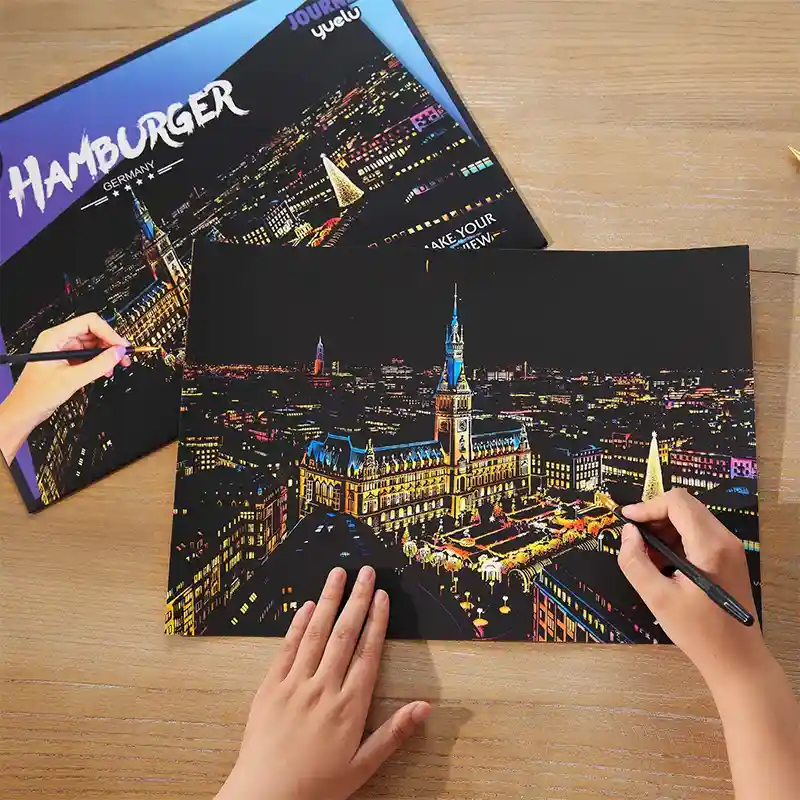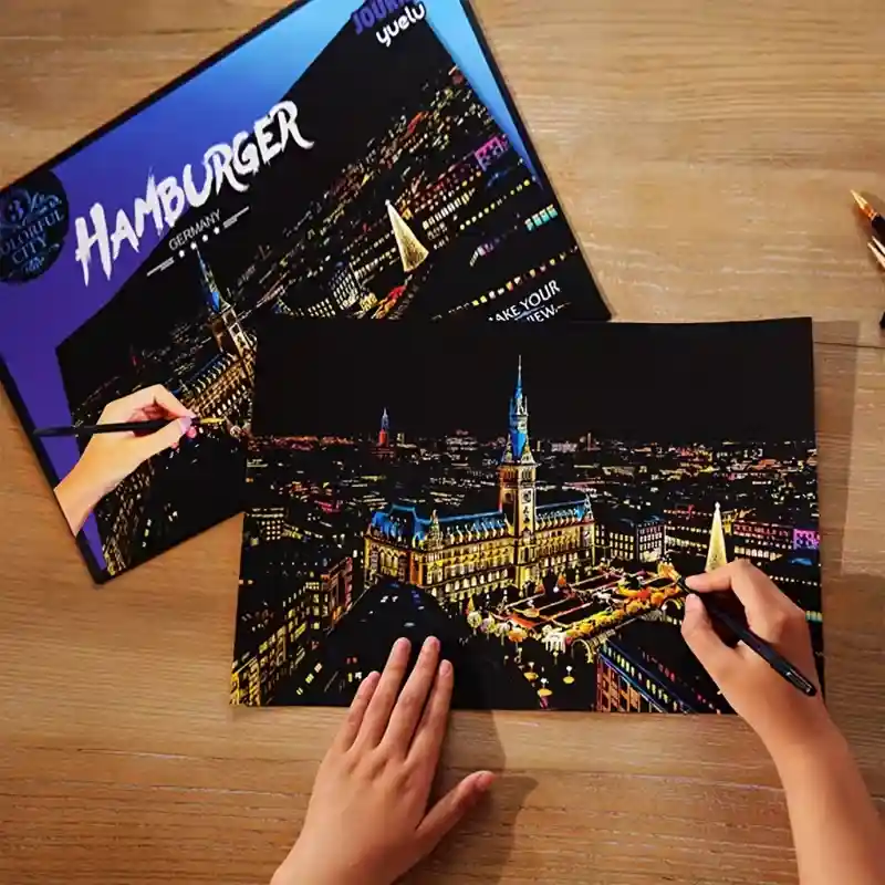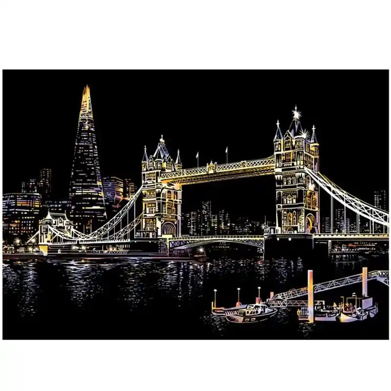 تابلو اسکرچ سایز 405*285 یک سرگرمی جذاب و آرامش بخش برای کودکان و بزرگسالان. این تابلو نه به ماژیک و آب نیاز دارد و نه به مداد رنگی فقط به کمک یک قلم چوبی رنگ های زیر این تابلو را نمایان کن و یک تابلو زیبا برای گوشه اتاق خودت درست کن. این تابلو شامل یک برگ به ابعاد 210*295 میلیمتر است که روی آن یک رنگ سیاه و در زیر آن رنگ های رنگین کمانی وجود دارد که با کمک قلم چوبی که همراه تابلو قرار دارد میتوانید رنگ سیاه روی آن را بتراشد و تصاویر مختلف از بناهای معروف در سرتاسر دنیا را نمایان کنید. تابلو اسکرچ برای گروه سنی 5 سال به بالا مناسب است.