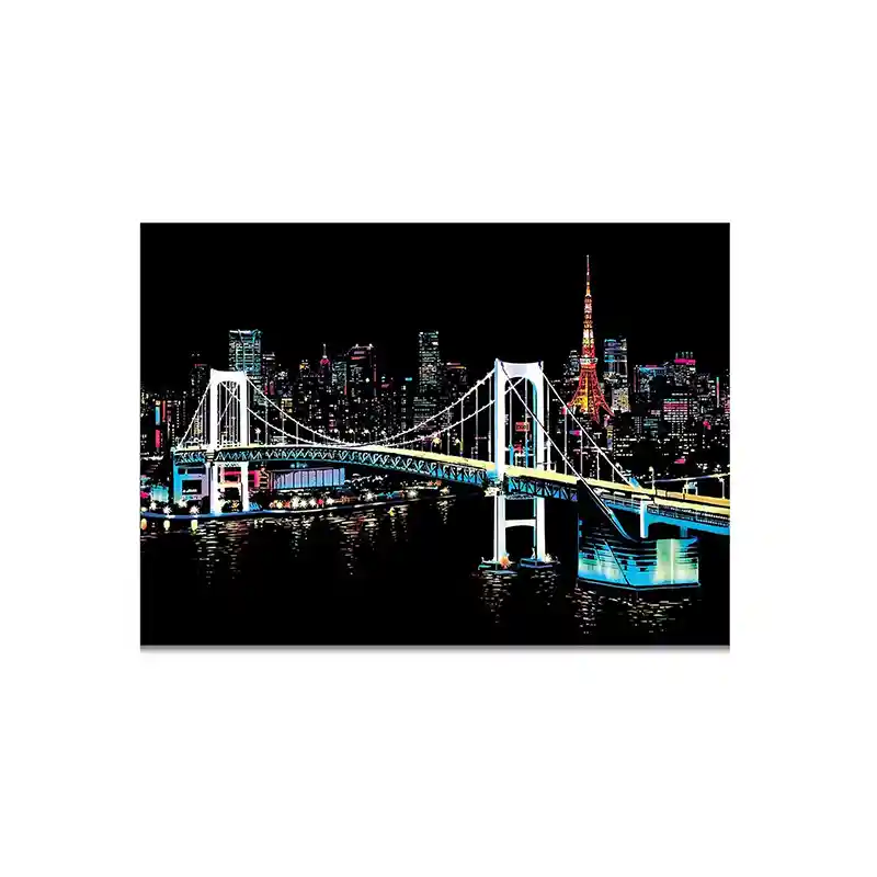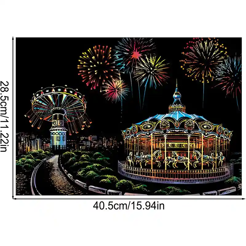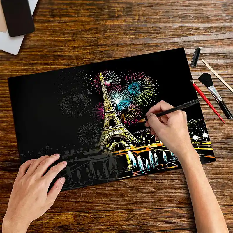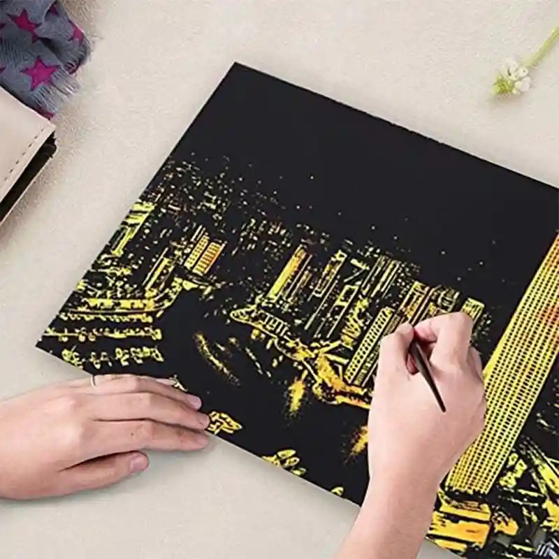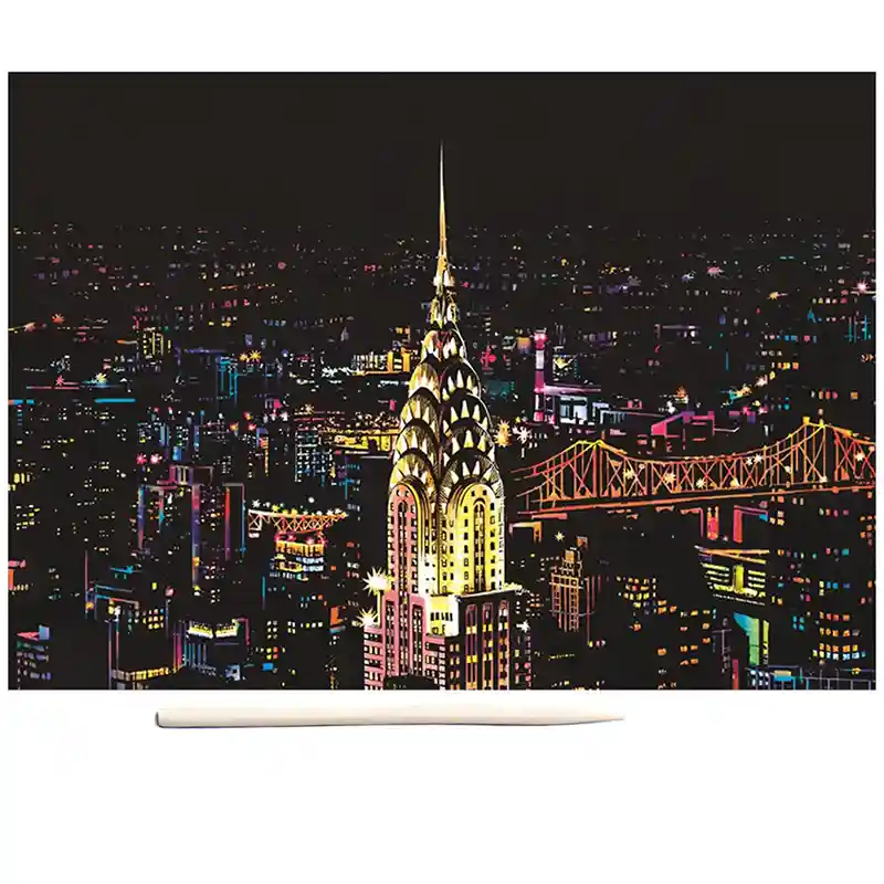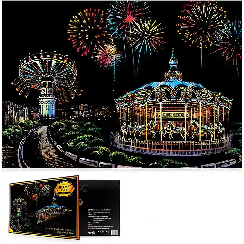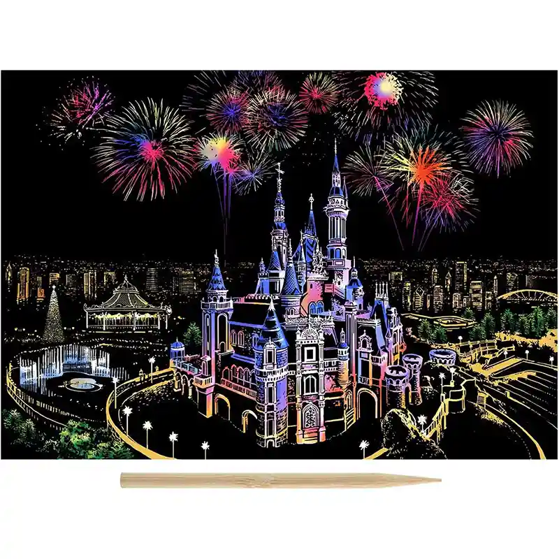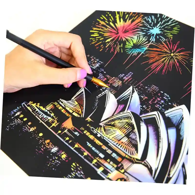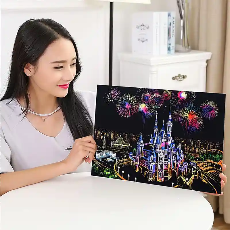تابلو اسکرچ سایز 405*285 یک سرگرمی جذاب و آرامش بخش برای کودکان و بزرگسالان. این تابلو نه به ماژیک و آب نیاز دارد و نه به مداد رنگی فقط به کمک یک قلم چوبی رنگ های زیر این تابلو را نمایان کن و یک تابلو زیبا برای گوشه اتاق خودت درست کن. این تابلو شامل 1 برگ