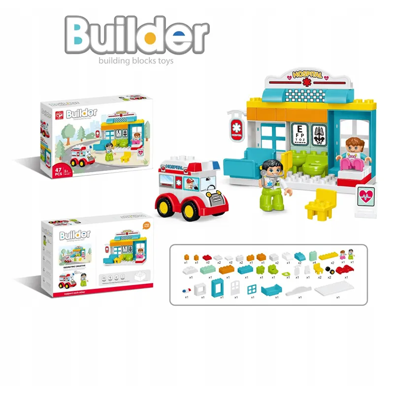 اسباب بازی لگو دوپلو 47 تکه مدل بیمارستان، یک اسباب بازی ساختنی میباشد و موجب افزایش توانایی و مهارت های ذهنی کودک، تقویت ماهیچه های دست کودک، آشنایی با دنیای رنگ ها، بالا بردن هوش تصویری کودک و افزایش توانایی قدرت حل مسئله توسط کودک میشود. این لگو از پلاستیک درجه 1، رنگ های طبیعی و فاقد مواد شیمیایی مضر ساخته شده است.