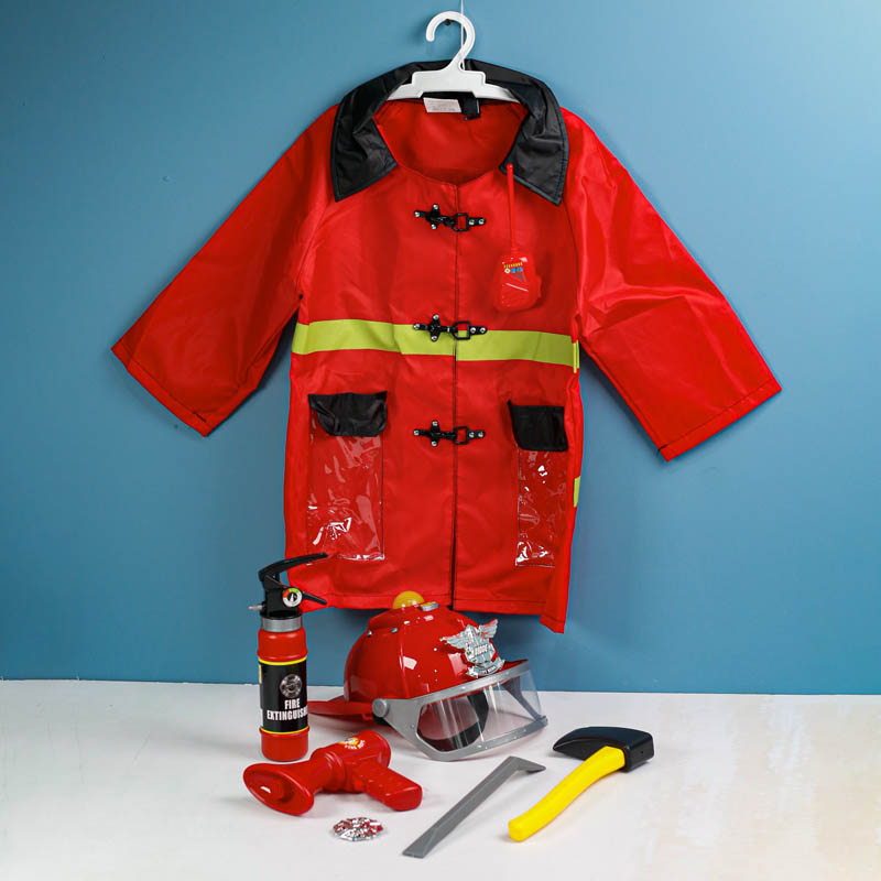 ست لباس مشاغل کودک مدل آتش نشان یک مدل از انواع لباس نمایش کودک می باشد و برای نقش بازی کودک بسیار سرگرم کننده است. کودک با پوشیدن انواع لباس نمایش در دنیای نقش بازی غرق میشود و از این طریق بسیاری از مهارت های زندگی را تمرین میکند. این لباس آتش نشان کودک برای نقش بازی کودکان بسیار ایده ال است و بازی با آن موجب افزایش خلاقیت در کودکان می شود.