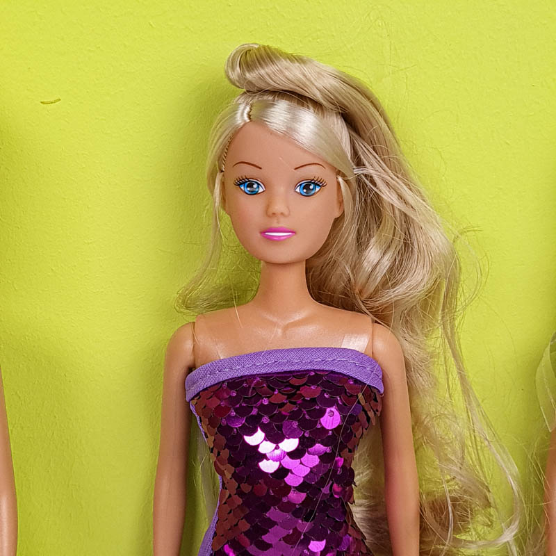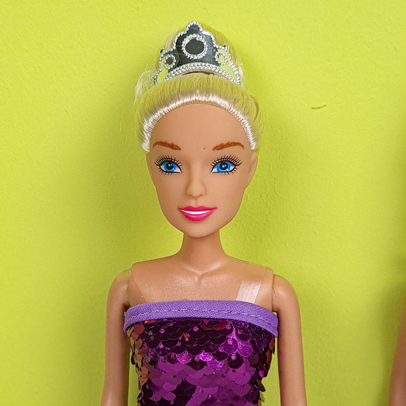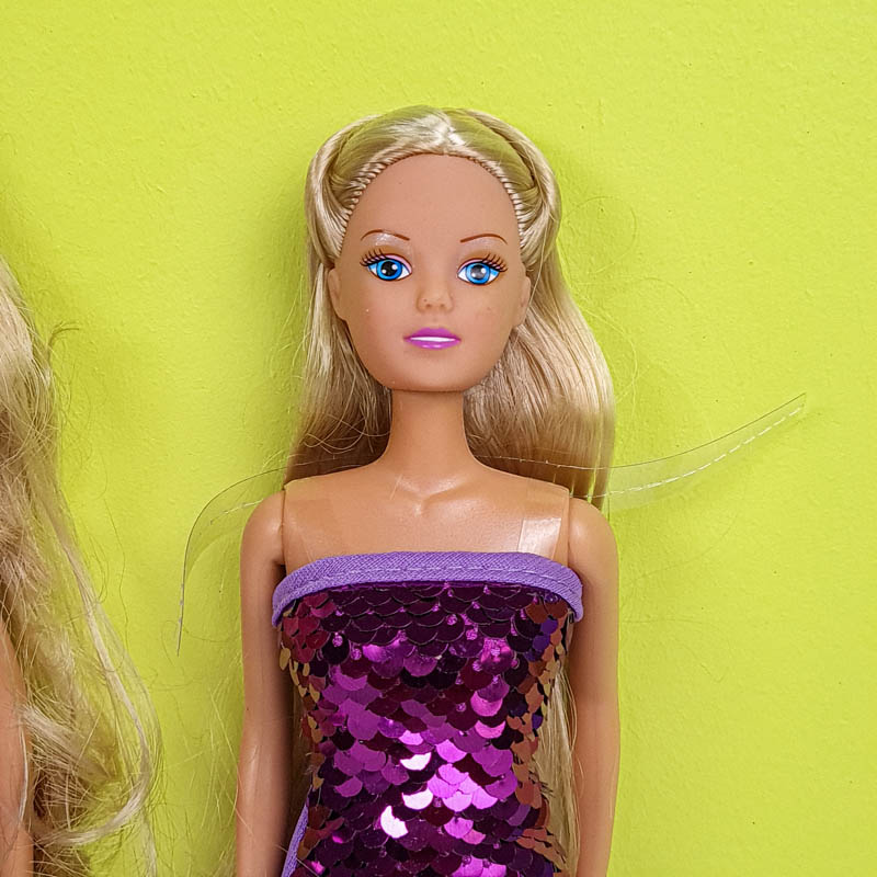 عروسک باربی با لباس دکلته پولکی ارغوانی تک عددی