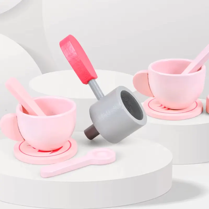 اسباب بازی قهوه ساز چوبی صورتی