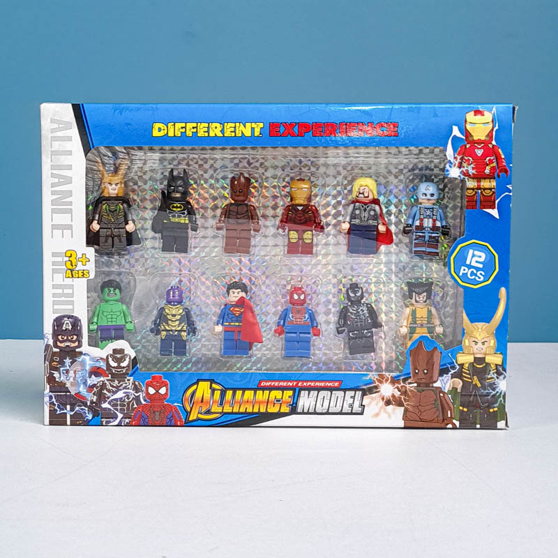 مینی فیگور 12 عددی طرح قهرمانان مارول شامل 12 عدد فیگور لگویی جذاب برای بازی کودکان بالای 3 سال! شما این مینی فیگور ها را می توانید بر روی صفحه لگو کلاسیک نیز قرار دهید تا بتوانید بازی های بیشتری را با این مینی فیگور های لگویی انجام دهید.