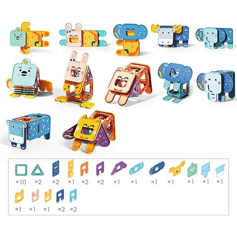 | تعداد | 12 قطعه مگنتی، 21 اشکال حیوانات |