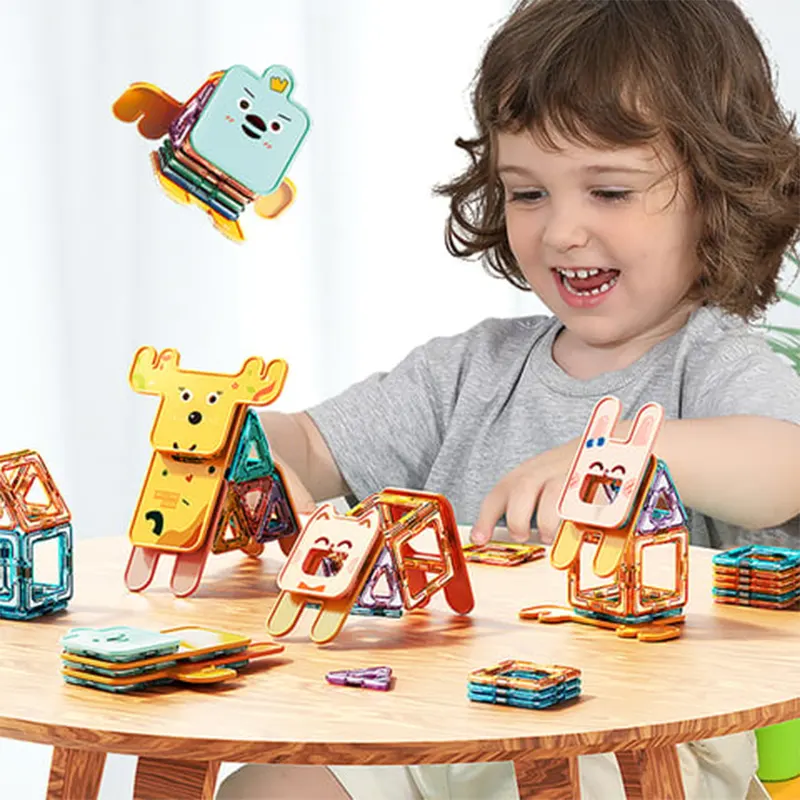 اسباب بازی Magnetic sheet، کاشی مغناطیسی، مگنتیک تایل یا لگو مگ از قطعات پلاستیکی ساخته شده اند که درون آن آهنربا قرار دارد. کودکان میتوانند با کمک دفترچه راهنما ساختی که درون بسته بندی وجود دارد حیوانات سه بعدی بامزه بسازند و هوش فضایی خود را تقویت کنند. کاشی مغناطیسی از 12 تکه آهنربایی در اشکال مربع، مثلث و 21 اشکال حیوانات ساخته شده است که کودک با در کنار هم قرار دادن آن حیوانات مختلفی را می سازد