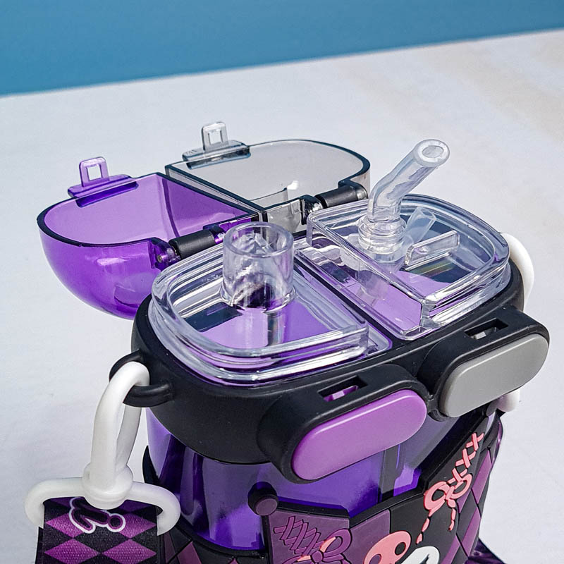 قمقمه نی دار طرح کرومی وسیله ای بسیار کاربردی و مناسب برای نگهداری مایعات نوشیدنی کودکان در مدرسه، کلاس و زمانی که بیرون از منزل هستند و حتی از نظر ابعادی مناسب کلاس های ورزشی هم است. این قمقمه دارای 2 سری و محفظه می باشد، دارای نی پلاستیکی که نوشیدن را آسان تر می کند، همچنین یک سری دیگر برای نوشیدن بدون نی نیز با دیواره ای که بین دومحفظه وجود دارد میتوانید 2 نوع نوشیدنی در قمقه خود داشته باشید، چه چیزی بهتر از این؟ دارای درپوش مقاوم برای بهداشتی ماندن نی و جلوگیری از ریزش آب. همچنین دارای بند برای حمل راحت تر است.
