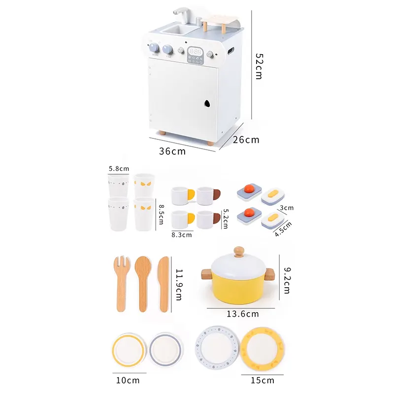 اسباب بازی ست کامل ماشین ظرفشویی چوبی رنگ سفید