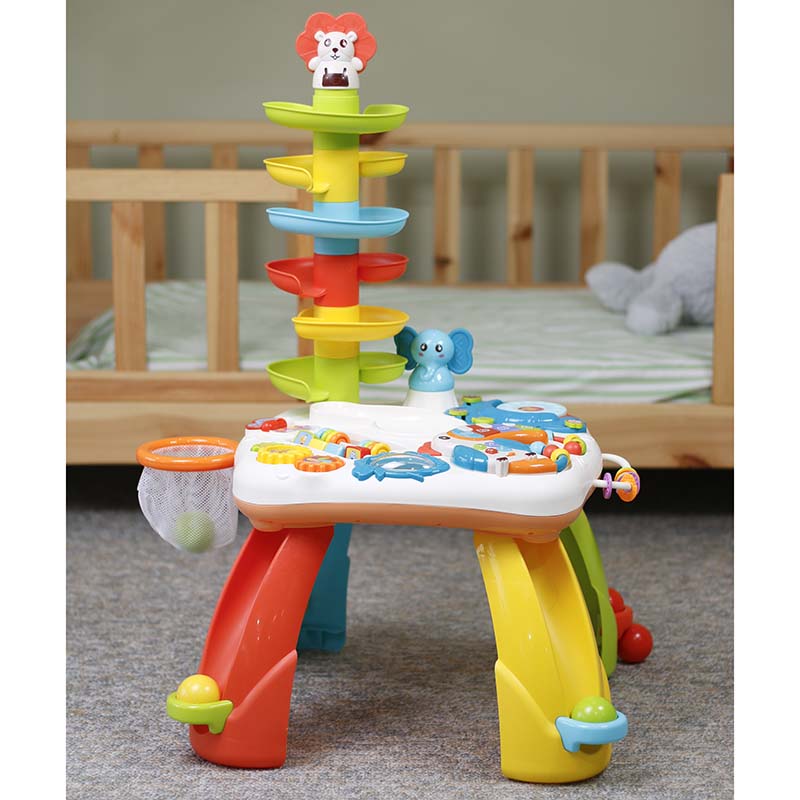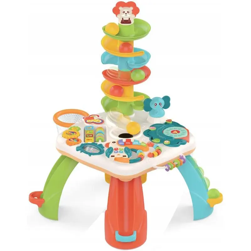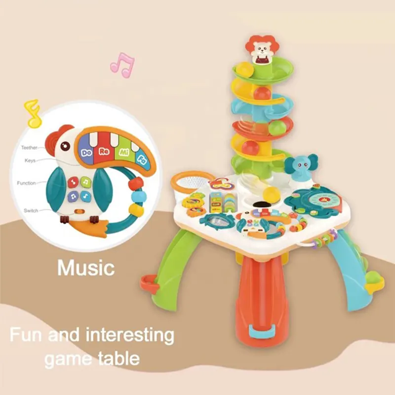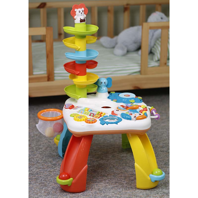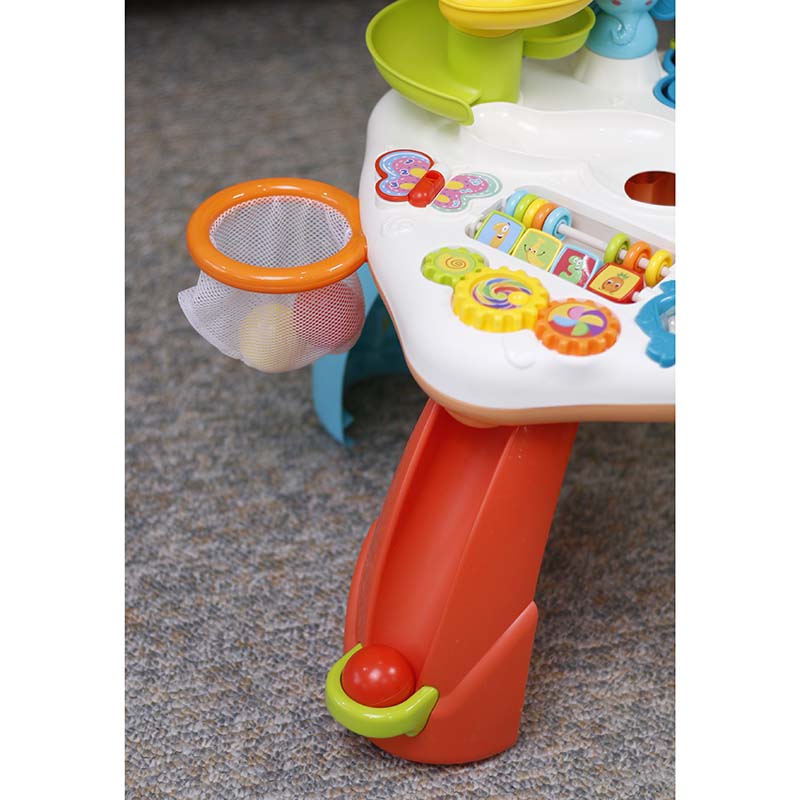 این میز بازی کودک موزیکال دارای رنگ های متنوع و جذاب است آهنگ های شاد و چراغ های چشمک زن آن سبب شناخت رنگ کودک میشود کمک میکند تا کودک بازی کند، سرگرم شود و همچنین حرکاتش را بهتر هماهنگ کند. این اسباب بازی برای سن بالای 18 ماه مناسب است و متناسب با کودک طراحی شده است تا بتواند به هر قسمت از آن که می خواهد برسد. این اسباب بازی با رنگ های شادی که در آن به کار رفته می تواند در جلب توجه کودک به صدا و رنگ مفید بوده و به بهبود کارایی دیداری و شنیداری کودک کمک کند. این میز آموزشی باعث تحریک خلاقیت و هوش خواهد شد.