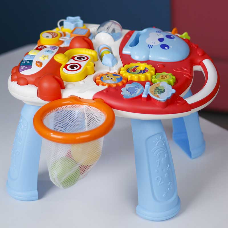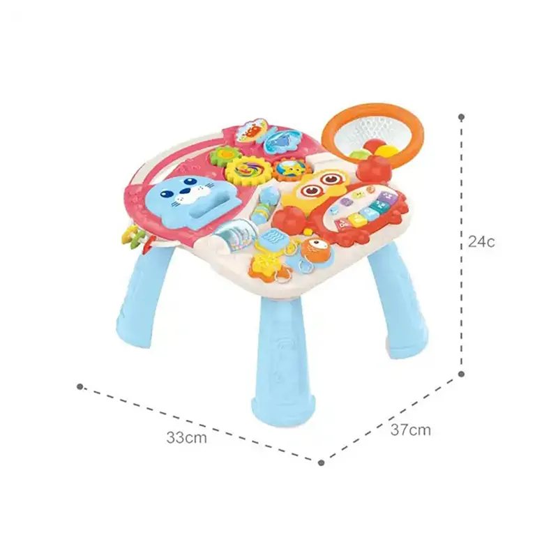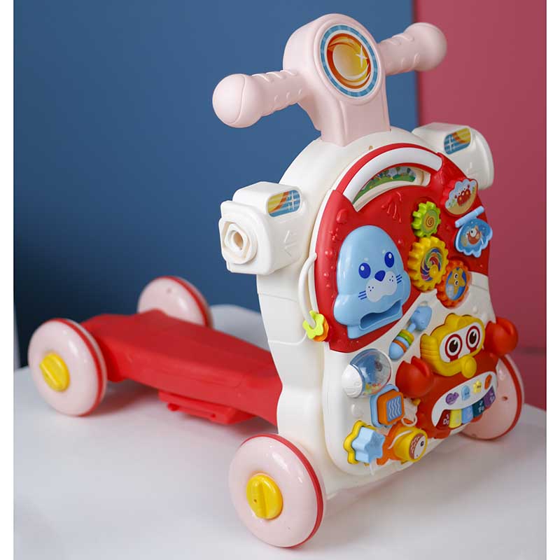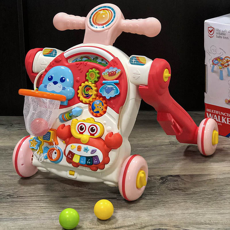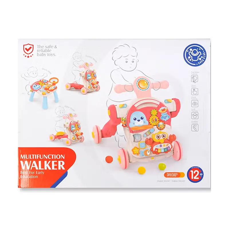 بازی پرتاب توپ توی حلقه، چرخ دنده، پیانو( با قابلیت جدا شدن از صفحه بازی، پازل جاگذاری از جمله بازی های این واکر موزیکال هستند که باعث تقویت مهارت هایی مثل هماهنگی چشم و دست، یادگیری رنگ ها و اشکال، تقویت تمرکز، افزایش خلاقیت، تقویت شنوایی و بینایی، تقویت عضلات دست و ... میشه. شما میتونین به صفحه بازی 4 تا پایه وصل کنین تا به راحتی تبدین به یک میز بازی آموزشی سرگرم کننده بشه. این واکر قابلیت پخش 6 شعر چینی و سرود انگلیسی، 8 نوع صدای ابزار موسیقی، 5 زنگ چینی و انگلیسی، 8 موزیک چینی و انگلیسی، 6 داستان چینی و انگلیسی، آموزش نام ایالت ها و ستاره ها و ... هم داراست.