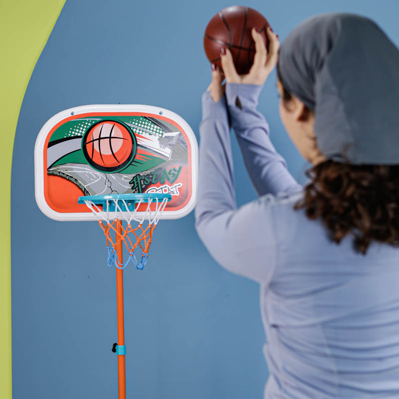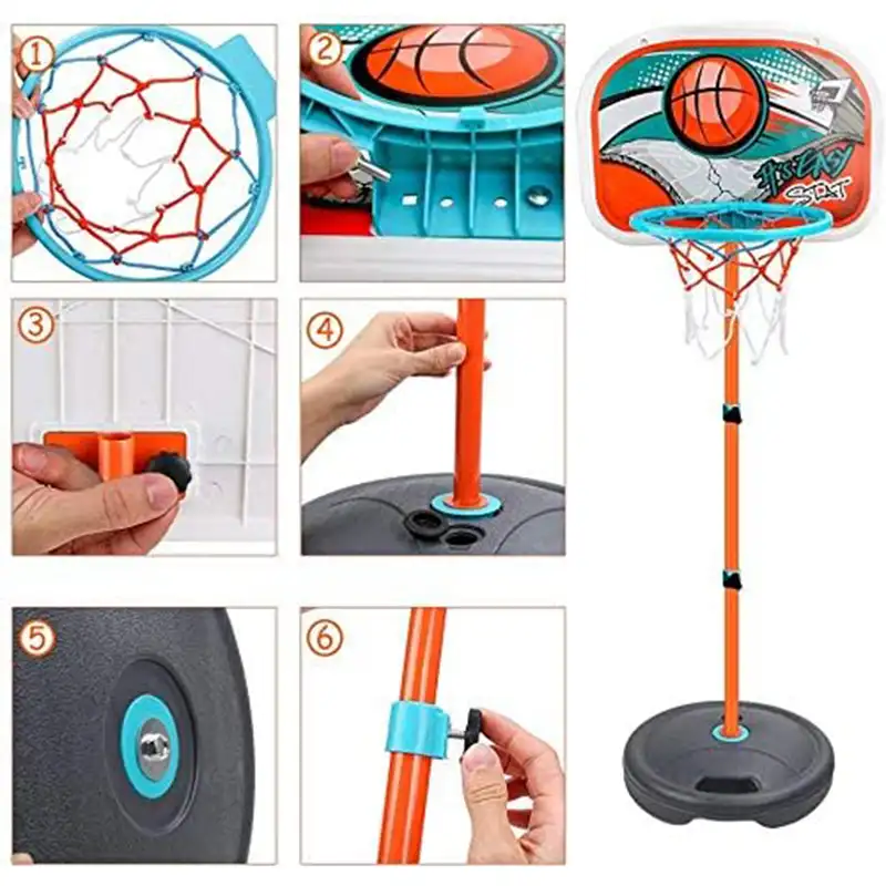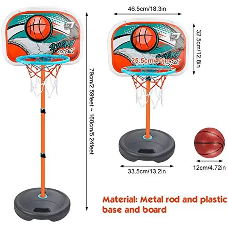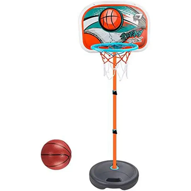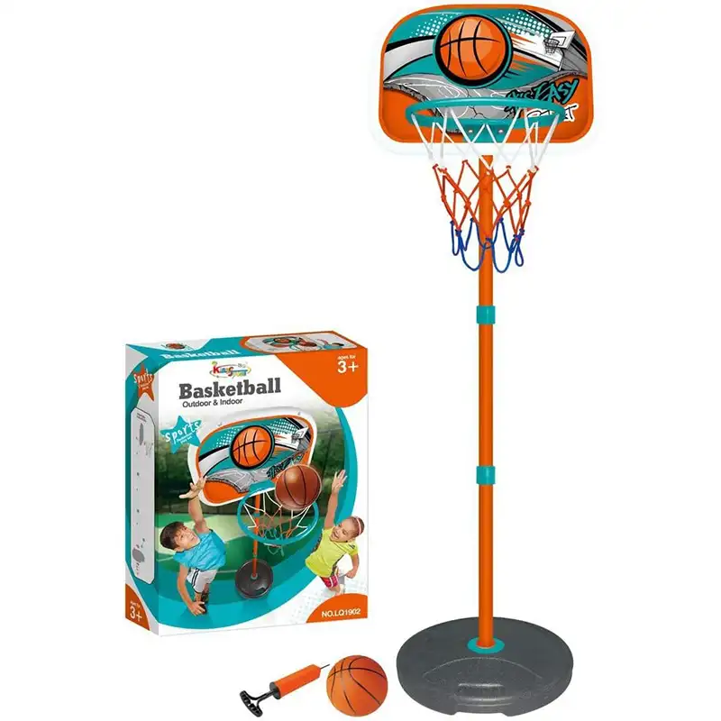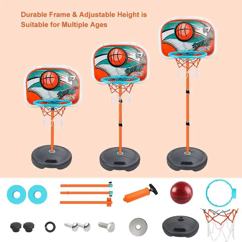 حلقه بسکتبال کودک با ارتفاع قابل تنظیم 79- 160 سانتی متر رو داره. این اسباب بازی حلقه بسکتبال یک توپ کوچک و تلمبه هم همراهش داره و برای بچه های بالای 3 سال میتونه یک اسباب بازی ورزشی باحال باشه. این اسباب بازی بسکتبال به راحتی نصب میشه و میتونه یک تفریح سالم برای تشویق بچه ها به فعالیت و ورزش باشه! برای تعادل کامل حلقه بسکتبال باید محفظه مشکی مخصوص در پایه را با شن و آب پر کنید.