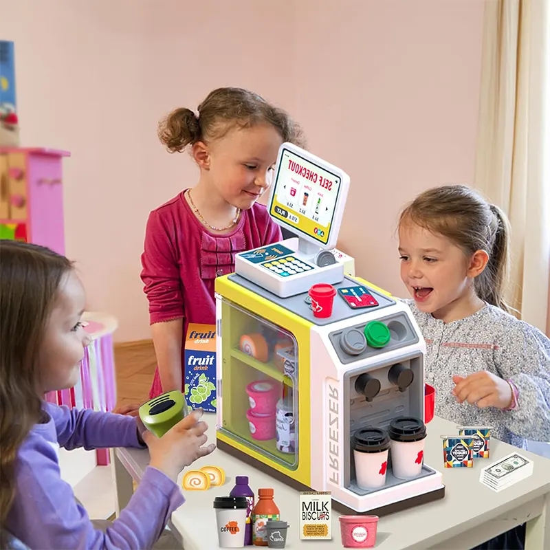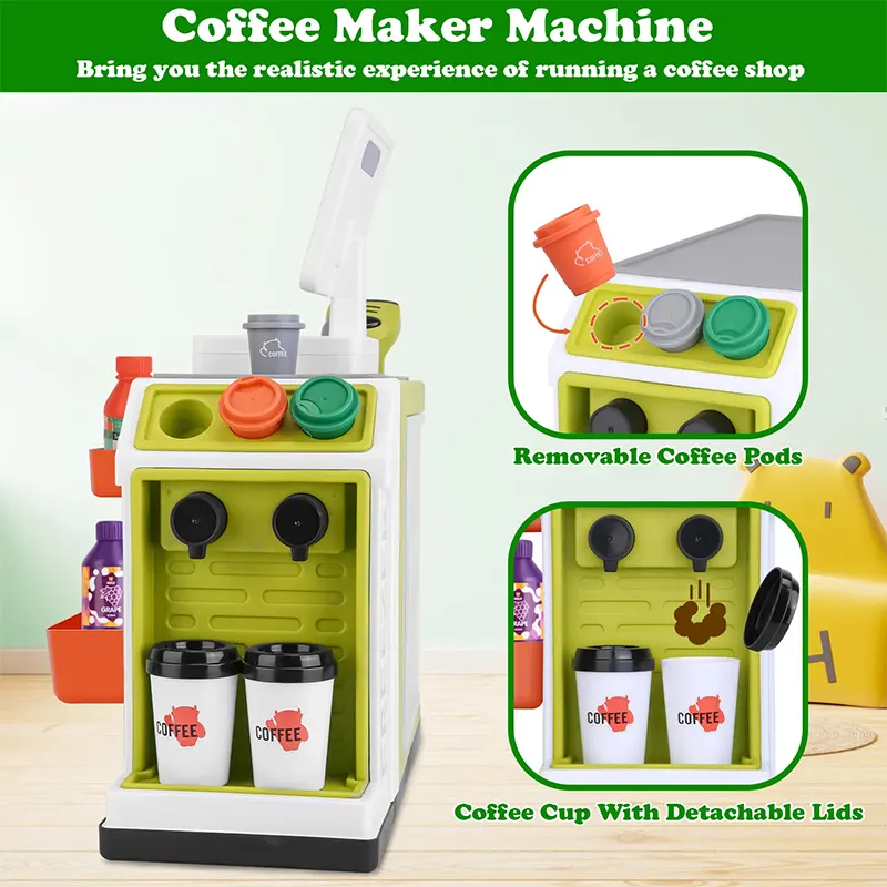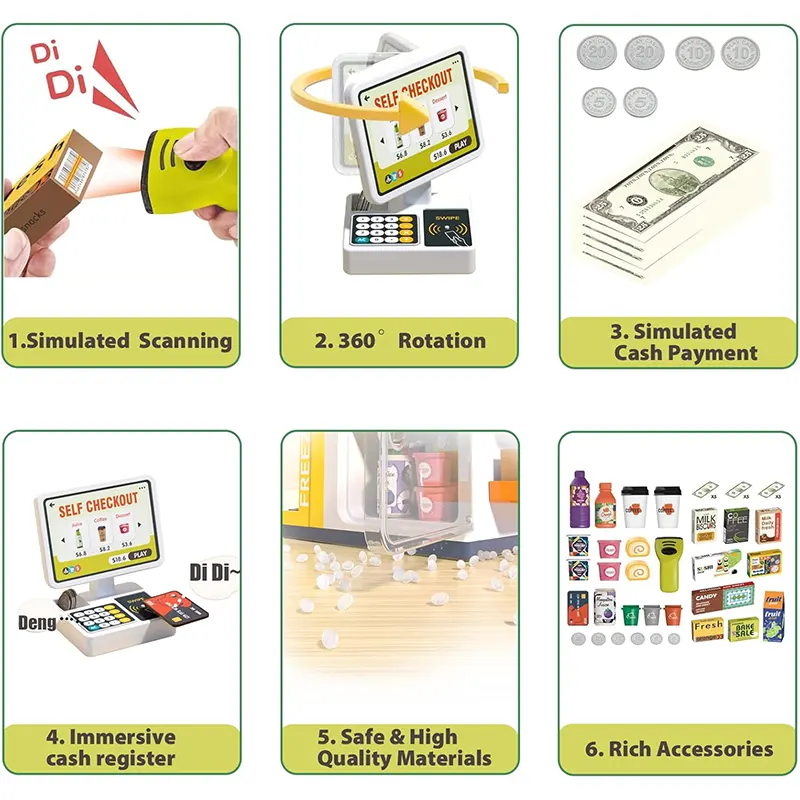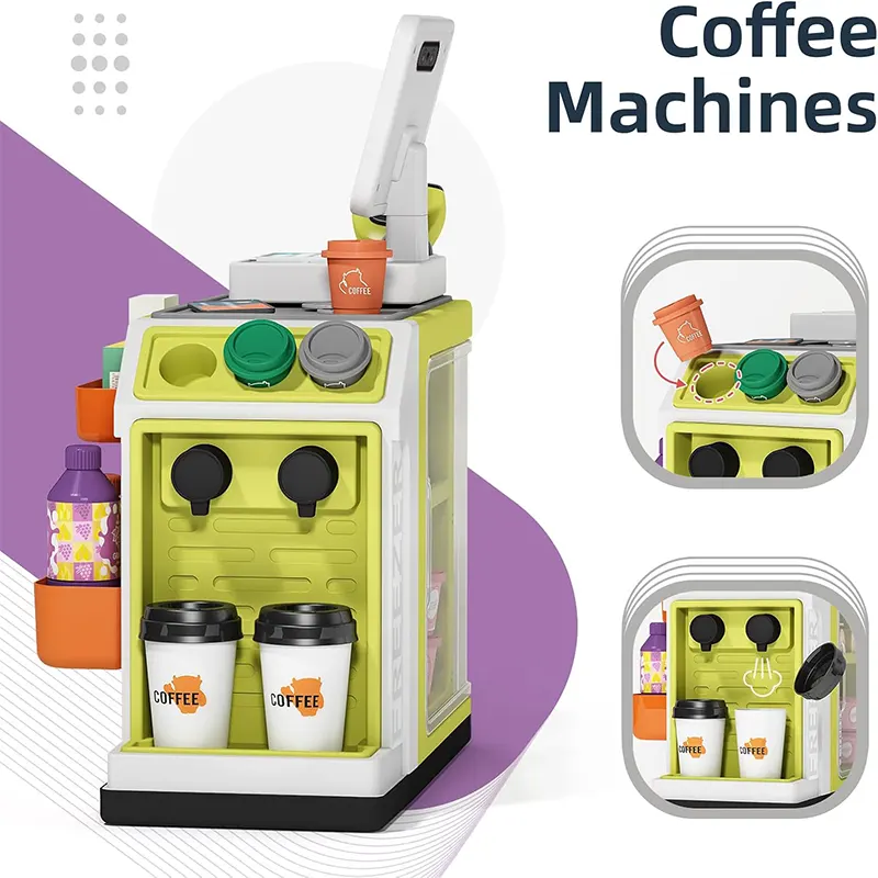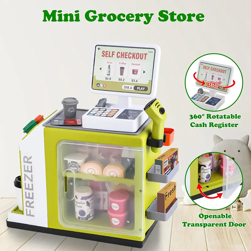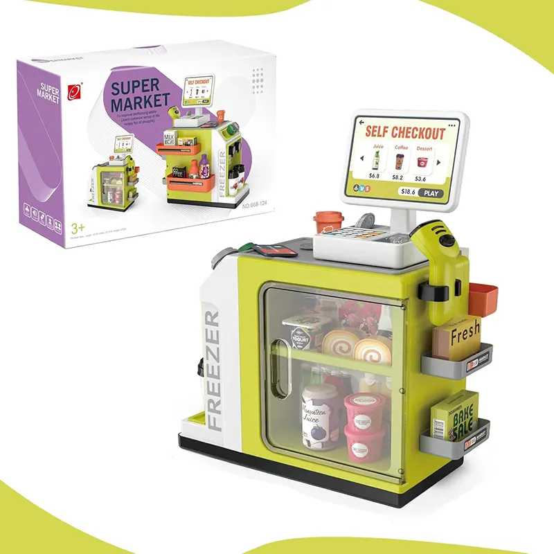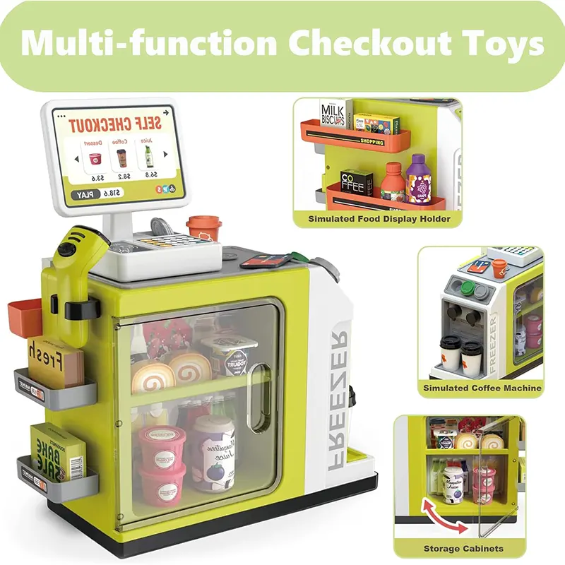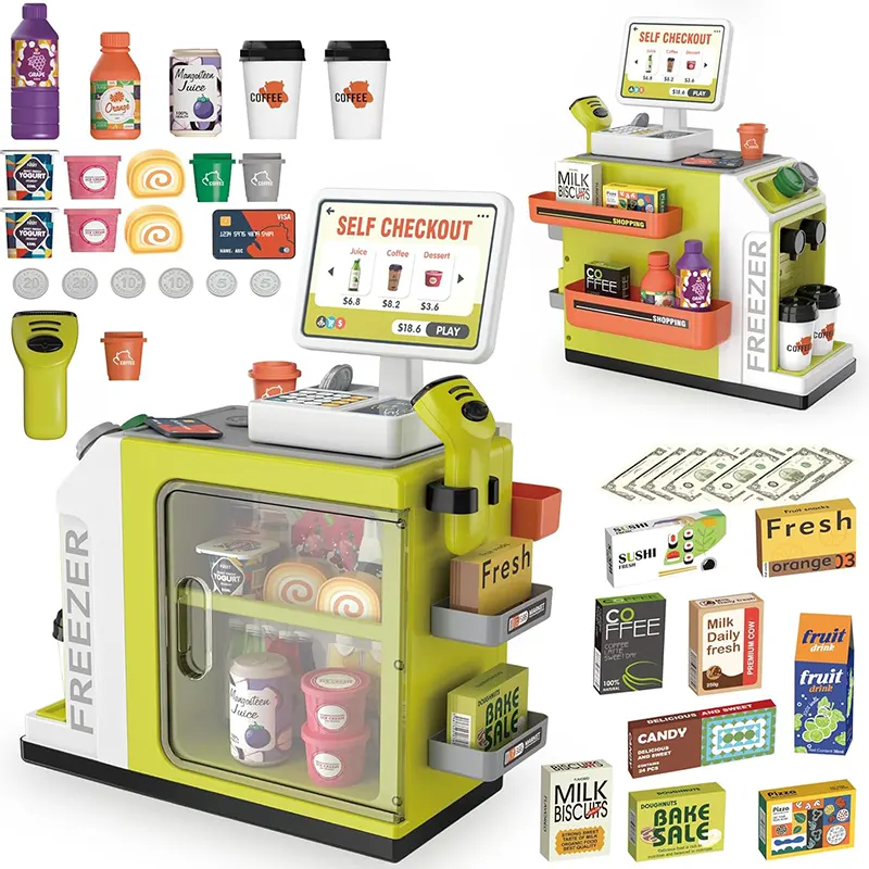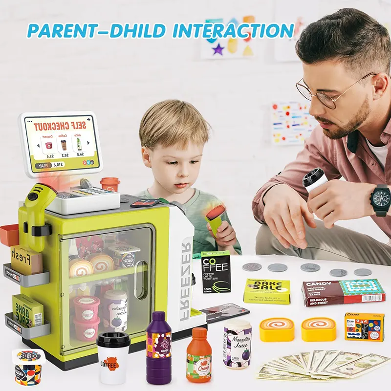 سوپر مارکت اسباب بازی دارای اسکنر (بارکد خوان) و دستگاه پوز است. کودک مواد غذایی خود را انتخاب میکند و سپس در صندق با بارکد خوان قیمت را به صورت خیالی وارد میکند و میتواند با کمک دستگاه پوز یا پول نقد خرید خود را حساب کند. این اسباب بازی دارای قهوه و اسپرسو ست که 3 طعم در بالا قرار میگیرد و لیوان ها در پایین و زیر نازل و هنگام بازی حس ریختن یک هوه گرم و خوشمزه به کودک دست میدهد. درهای قفسه این سوپر مارکت بزرگ باز و بسته میشود. بازی با این استند فروشگاه موجب تقویت خلاقیت، مهارت های حرکتی از جمله دست ورزی، تقویت بینایی، افزایش هماهنگی چشم و دست می شود همچنین این اسباب بازی برای بازی های تعاملی و گروهی ایده آل است. این اسباب بازی سوپرمارکت با بسته بندی زیبا و قابل توجه خود یک هدیه فوق العاده برای کودکان بالای 3 سال است.