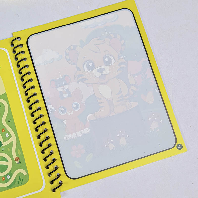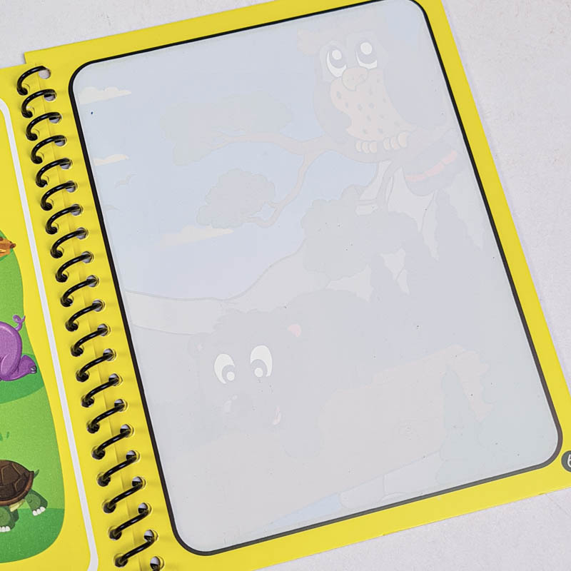 کتاب جادویی رنگ آمیزی با آب (مجیک واتر) مدل حیوانات، این کتاب جادویی فقط با آب کار میکنه پس دیگه نگران رنگ آمیزی دیوار خونه ها نباشید. مجیک واتر بوک یک کتاب جادویی با طرح حیوانات است. این کتاب 8 صفحه دارد که در 4 صفحه آن کودک میتواند با ماژیک جادویی رنگ آمیزی کند و در هر صفحه روبرو نام حیوانات مختلف، املای درست کلمات و یا عملکرد این کتاب جادویی را به کودک آموزش میدهد. برای رنگ آمیزی این کتاب جادویی کافیه مقداری آب درون ماژیک بریزید و روی صفحه های مخصوص ماژیک خیس را بکشید. طرح مخفی در زیر کتاب جادویی نمایان میشه و بلافاصله پس از خشک شدن محو میشه. جلد محکم و قطور این کتاب جادویی باعث میشه در برابر آب خراب نشه و همچنین به دیگر صفحات دیگر رنگ پس ندهد. این ماژیک و کتاب رنگ آمیزی جادویی هیچ وقت تموم نمیشه و با هر مرتبه خشک شدن کتاب مثل یک کتاب رنگ آمیزی جدید میشه که میتونه ساعت ها کودکان را سرگرم کند. مجیک واتر بوک برای گروه سنی 3 سال به بالا مناسب است.