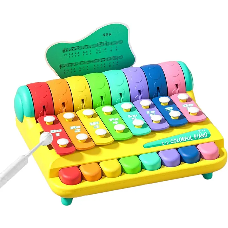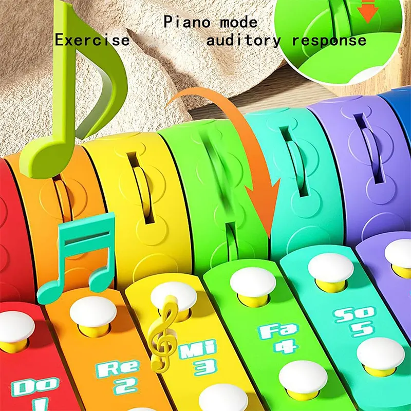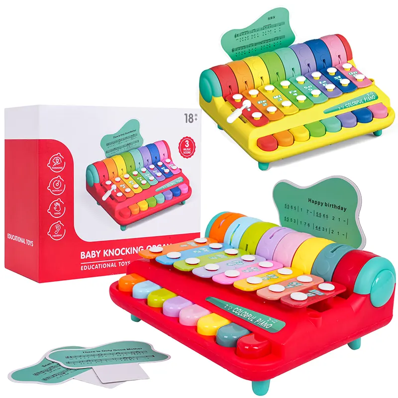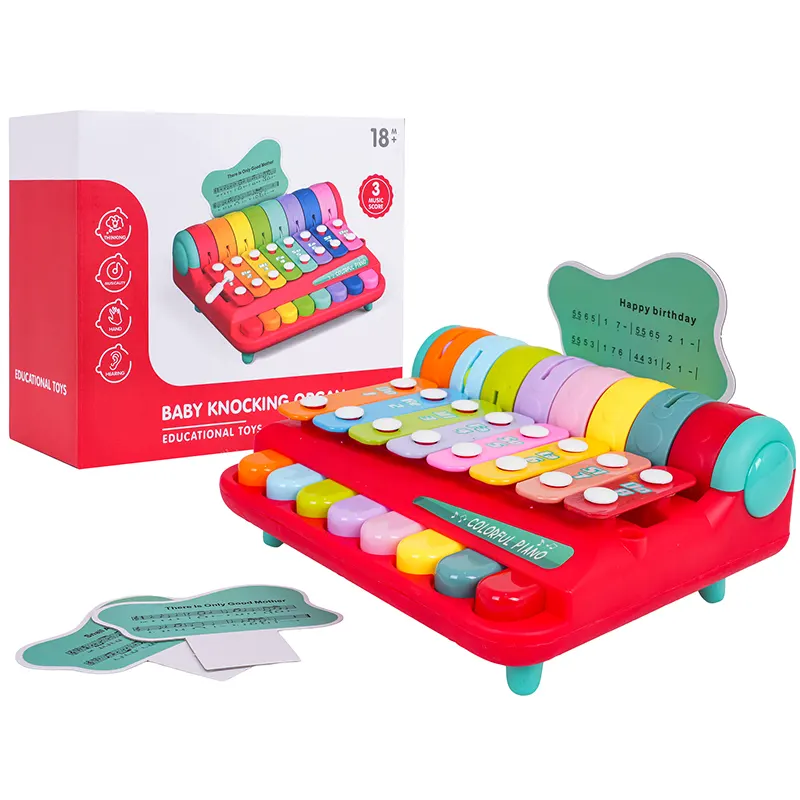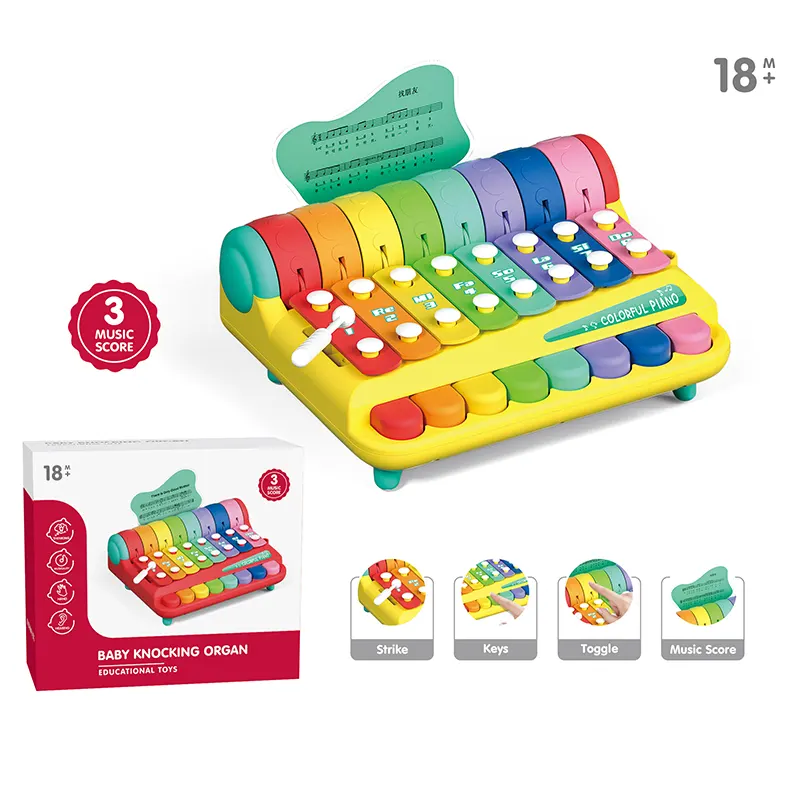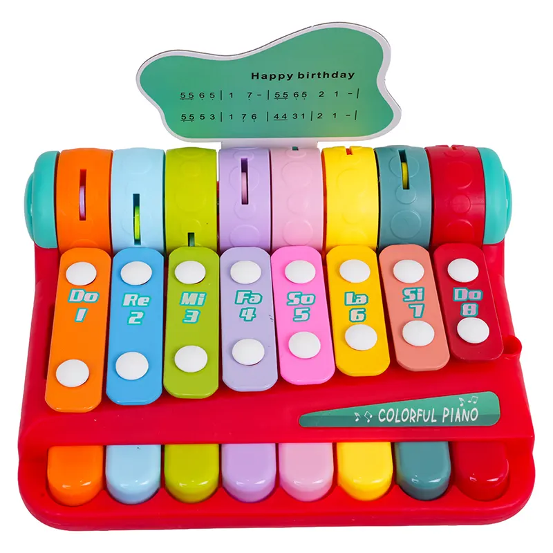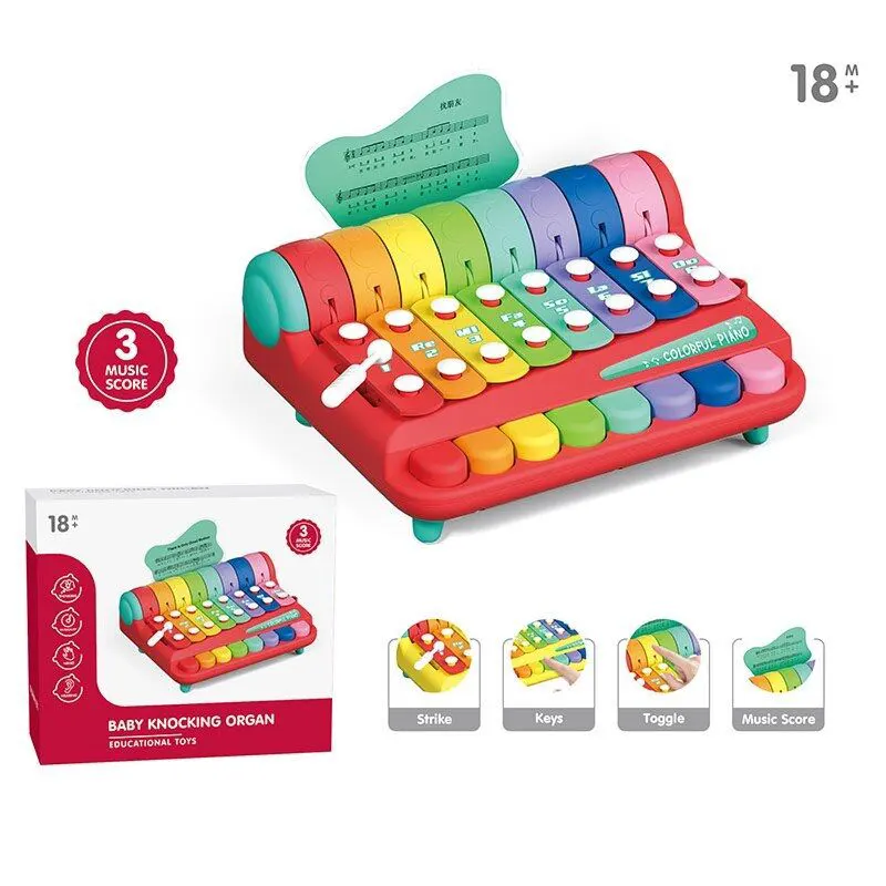 این بلز اسباب بازی شامل 8 کلید بلز و 8 کلید پیانو و 8 غلطک است که به کمک آن صدای موزیکال پخش میشود. بچه ها میتونن با استفاده از مضرابی که به همراه بلز است، بنوازن و یا از انگشتای کوچولوشون برای نواختن پیانو استفاده کنن این ست دارای 3 کارت نوت برای موزیک است. این اسباب بازی موسیقی با رنگ های شادش برای آشنایی بچه ها با ریتم، نت و حتی رنگ ها بسیار کاربردیه. بازی با اسباب بازی بلز وکال پیانو باعث تقویت مهارت هایی مثل هماهنگی چشم و دست، تقویت تمرکز، آشنایی با ریتم و نت، آشنایی با رنگ ها و توسعه خلاقیت بچه ها میشه.