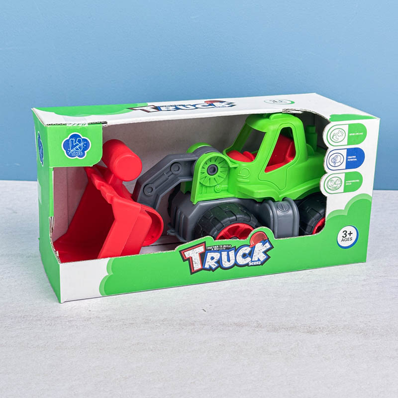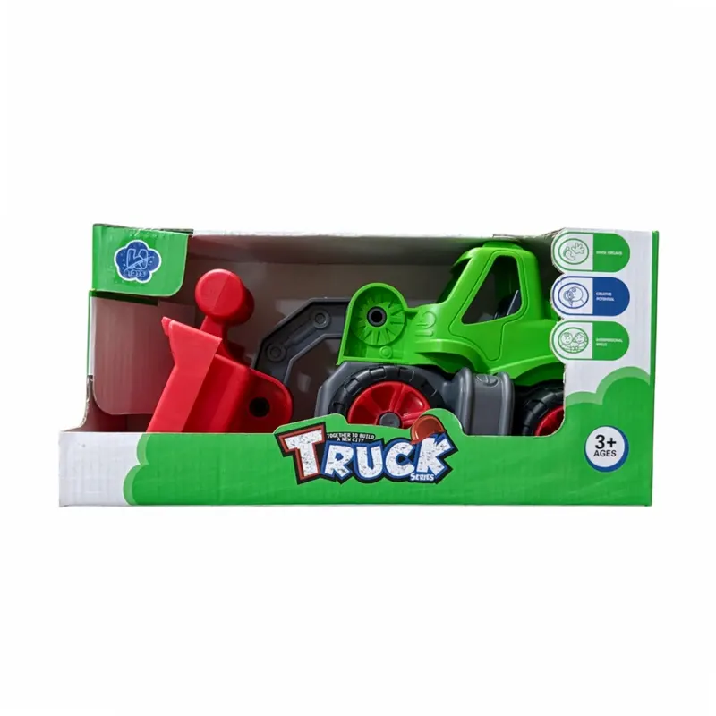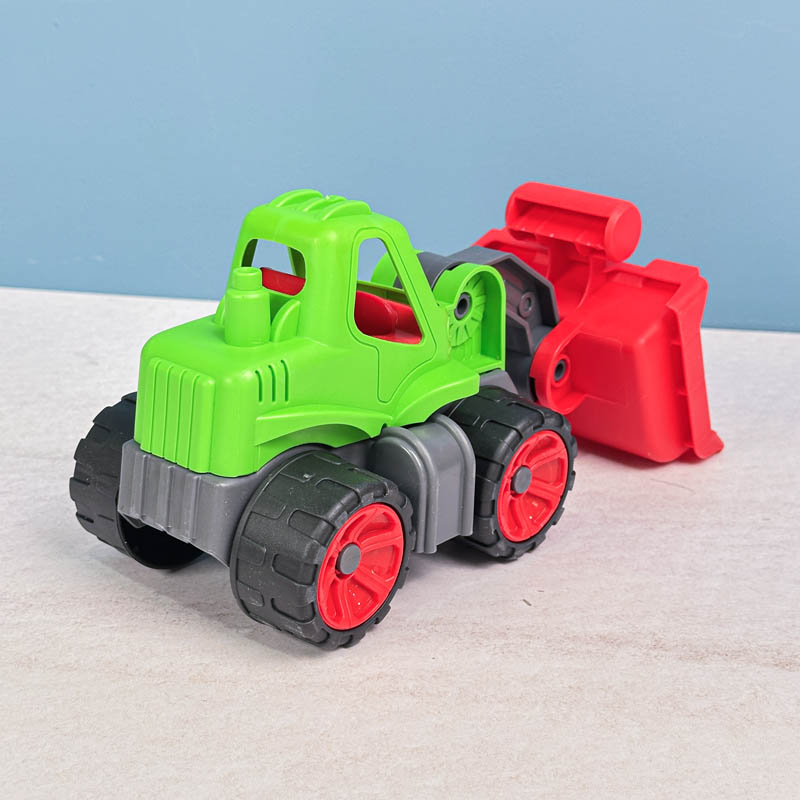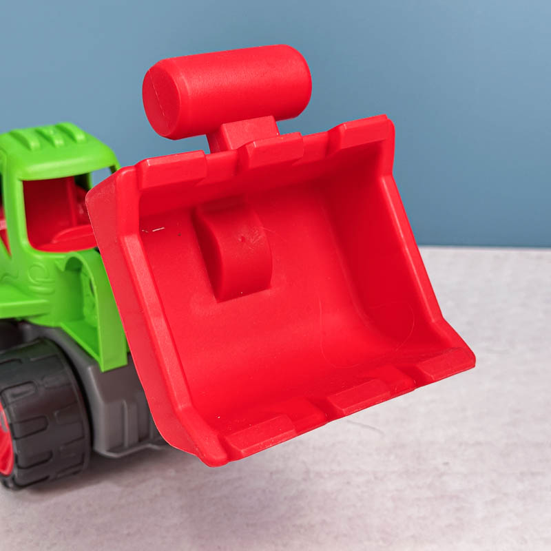 این اسباب بازی از پلاستیک مقاوم ساخته شده که در برابر ضربه مقاوم بوده و در برابر حساسیت پوستی کودکان به دلیل استفاده شده از مواد بسیار مرغوب واکنشی نشان نمیدهد. اسباب بازی کامیون بیل مکانیکی کوچک باعث ایجاد خلاقیت در کودکان می شود تا بتوانند مهارت های فردی خود را به چالش بکشند. متعلقات متصل شده به اسباب بازی از مواد پلیمری ساخته شده