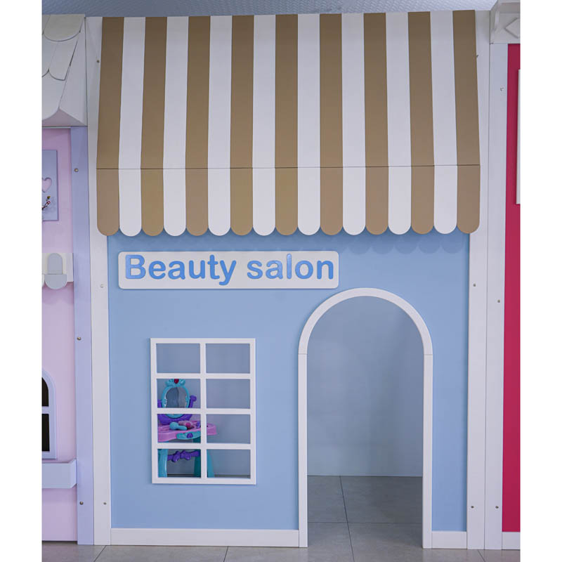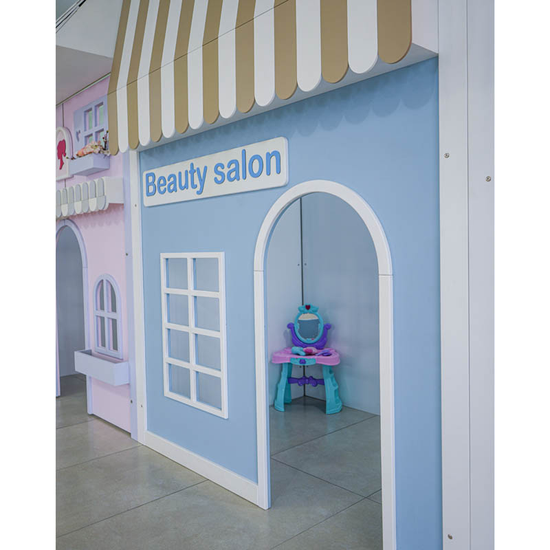 یکی از وسایل بازی آموزش در خانه بازی و مهد کودک ها اسباب بازی مشاغل مدل استند سالن زیبایی به کودکان است. کودک در خانه مشاغل به واسطه ی نقش بازی و بازی با اسباب بازی مشاغل میتواند انواع شغل ها را تجربه کند و شغل محبوب خود را بهتر بشناسد. آیتم سالن زیبایی خانه مشاغل کودک یک گزینه فوقالعاده برای تجهیز خانه کودک، شهربازی و مراکز آموزشی است. این آیتم با ارائه لوازم و تجهیزات آرایشگاه و زیبایی به کودکان، امکان یادگیری به صورت عملی و خلاقانه را به آنها میدهد.