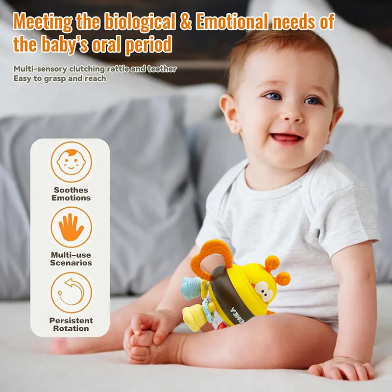 اسباب بازی بیزی بال طرح زنبور علاوه بر سرگرمی، به رشد مهارت های حرکتی ظریف و هماهنگی دست و چشم کودک شما کمک می کند. گرفتن و تکان دادن این جغجغه طرح زنبور برای بهبود انعطاف پذیری انگشتان و کف دست کودک بسیار مناسب است. مهره های مختلف روی توپ می تواند رشد بینایی و شنوایی کودک شما را تقویت کند.