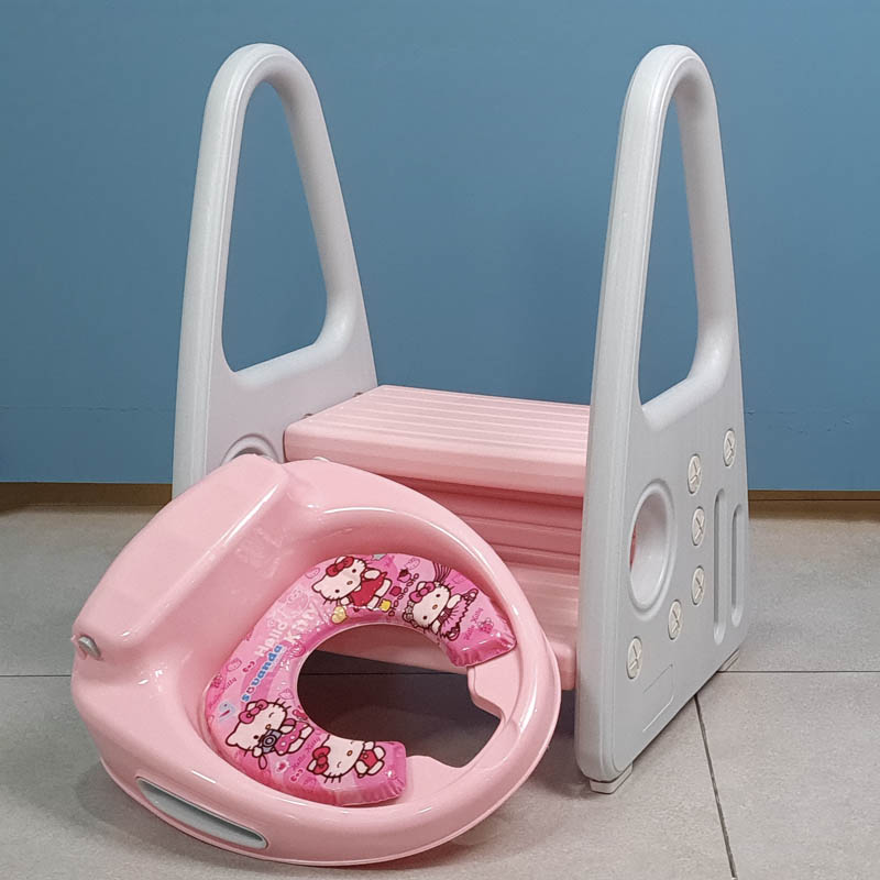 پله و تبدیل توالت فرنگی محصولی برای کمک به کودکانی است که تازه تمرین میکنند تا پوشک را کنار بگذارند. این تبدیل به همراه پله است که مجهز به پايه ضد لغزش و دستگيره كناری برای تسلط و راحتی كودک است. در ضمن این تبدیل توالت کودک قابل شستوشو، مناسب برای آموزش و مستقل شدن كودک در توالت رفتن نیز می باشد. این تبدیل توالت مناسب استفاده بر روی همه توالت فرنگی ها می باشد. این محصول از جنس پلاستیک مقاوم و باکیفیت است. از دیگر ویژگیهای خوب این تبدیل های توالت، جلوگیری از تماس پوست کودک با توالت فرنگی است که کودک را از در معرض قرار گرفتن انواع بیماریها و آلودگیها حفظ میکند.