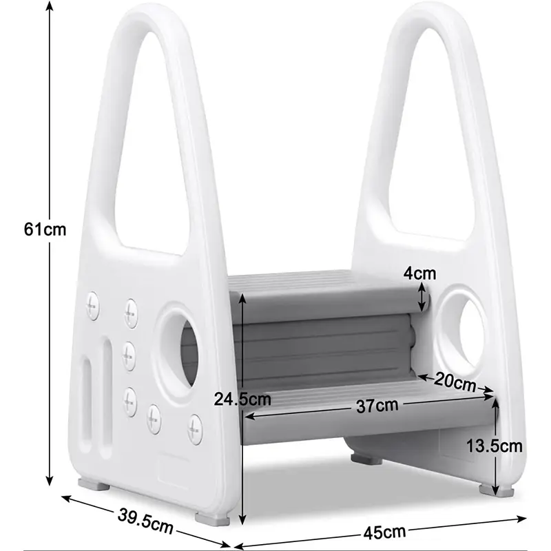 این پله چندین عملکرد مختلف به عنوان برداشتن لوازم از روی کابینت، شستن دست و صورت در روشویی، قابل استفاده به عنوان صندلی، استفاده در فرنگی بزرگسالان می باشد. پله کودک باعث افزایش اعتماد به نفس، تقویت حس استقلال و تقویت مهارت های حرکتی کودک میشود.