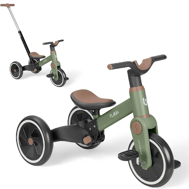 سه چرخه کودک 5 در 1 کیکابو مدل KIKKABOO Flash مناسب برای سنین 1.5 تا 4 سال است. این سه چرخه 5 در 1 قابلیت استفاده در 5 حالت را دارد (حالت سه چرخه بدون پدال و با دسته کنترل والدین، سه چرخه با دسته کنترل والدین، سه چرخه معمولی، دوچرخه تعادلی و دوچرخه). جنس سه چرخه کودک 5 در 1 کیکابو مدل KIKKABOO Flash محکم و از جنس فولاد پرکربن است و دارای چرخهای بادوام از فوم EVA سبک و ضد سوراخ هستند که برای بازی فضای باز ایدهآل هستند.