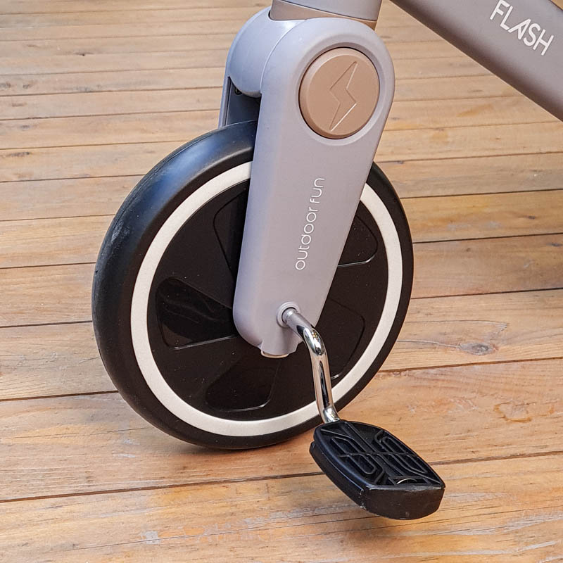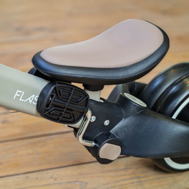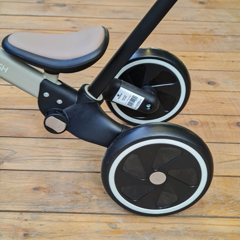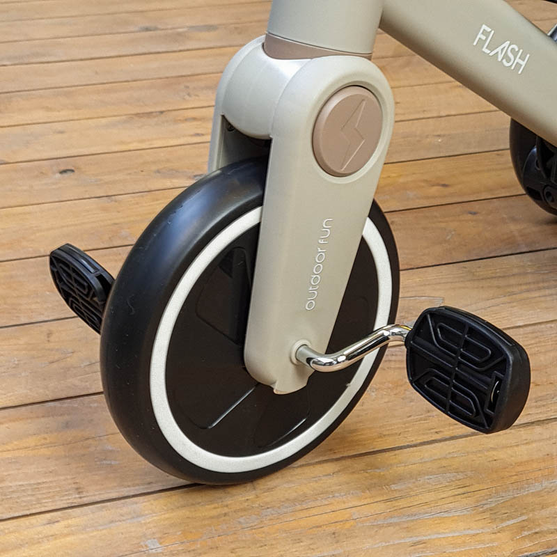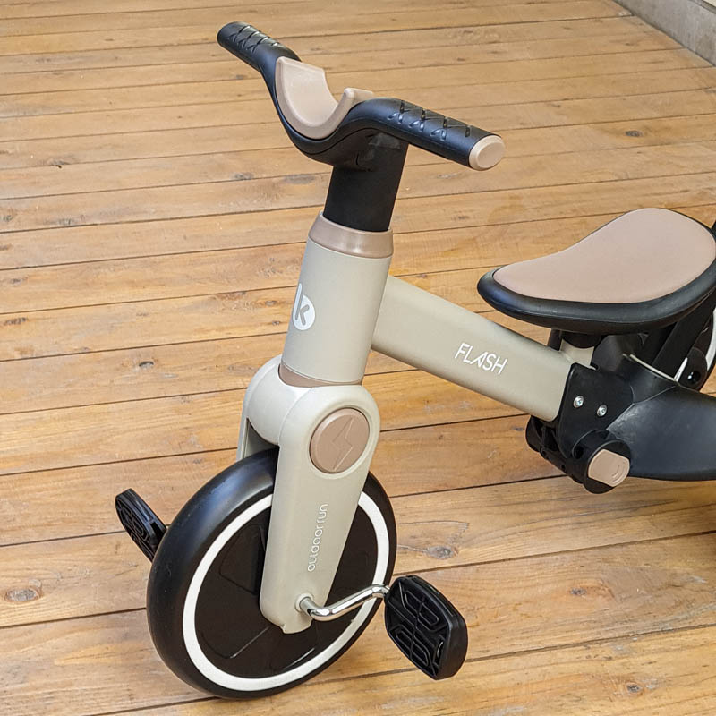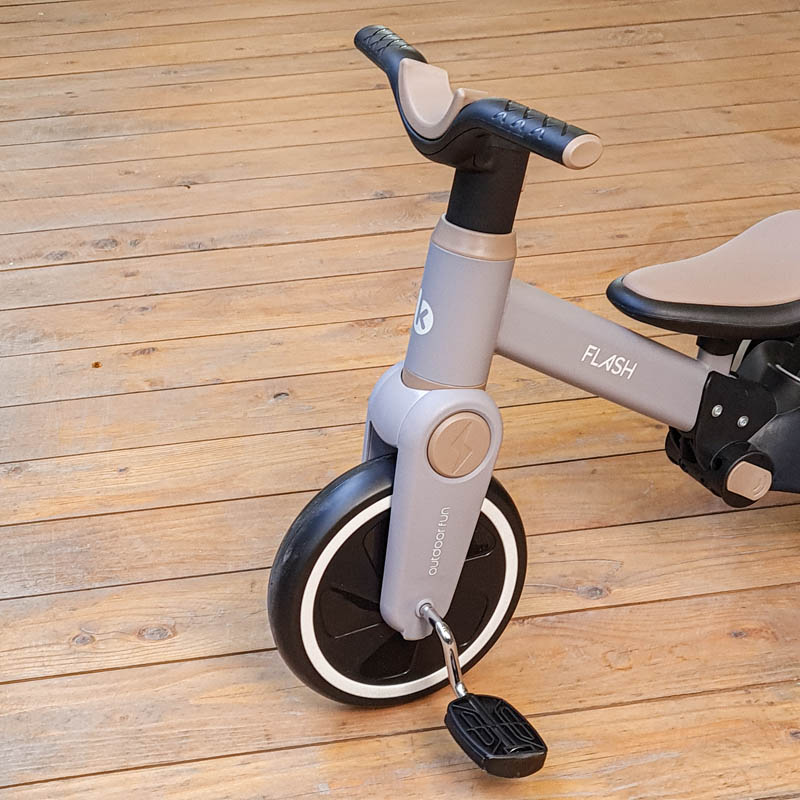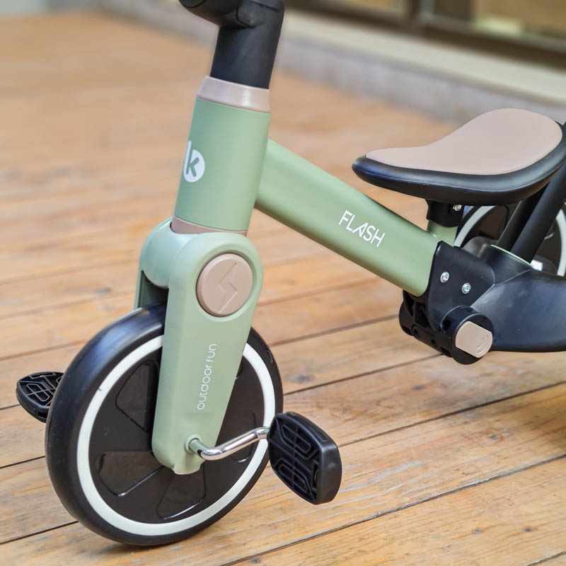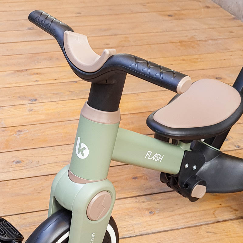 سه چرخه کودک 5 در 1 کیکابو مدل KIKKABOO Flash از جنس فولاد پرکربن، یک مدل سازه مثلثی محکم و بادوام است ولی در عین حال بسیار سبکه و راه بردنش خیلی لذت بخشه چرخ ها متحرک است و قابلیت تبدیل از سه چرخه به دوچرخه را دارد. چرخ های روان این سه چرخه بچه گانه به راحتی در جهات مختلف حرکت و گردش رو برای بچه ها و والدین به یاد موندنی تر میکنن. سه چرخه کودک 5 در 1 کیکابو مدل KIKKABOO Flash دارای ارتفاع دسته قابل تنظیم در 3 حالت است. زمانی که سن کودک شما هنوز به حدی نرسیده که بتونه به تنهایی سه چرخه سواری کنه، میتونین از دسته کنترل والدین با قابلیت تنظیم ارتفاع سه چرخه کودک استفاده کنین و فرزند دلبندتان را به گردش ببرید با حرکت دسته ی مخصوص هدایت والدین، سه چرخه به جلو حرکت میکند. در حالت هدایت توسط والدین،میتوان پدال ها را از سه چرخه جدا کرد و آن را به یک سه چرخه یا دو چرخه تبدیل کرد که با حرکت پا حرکت میکند.