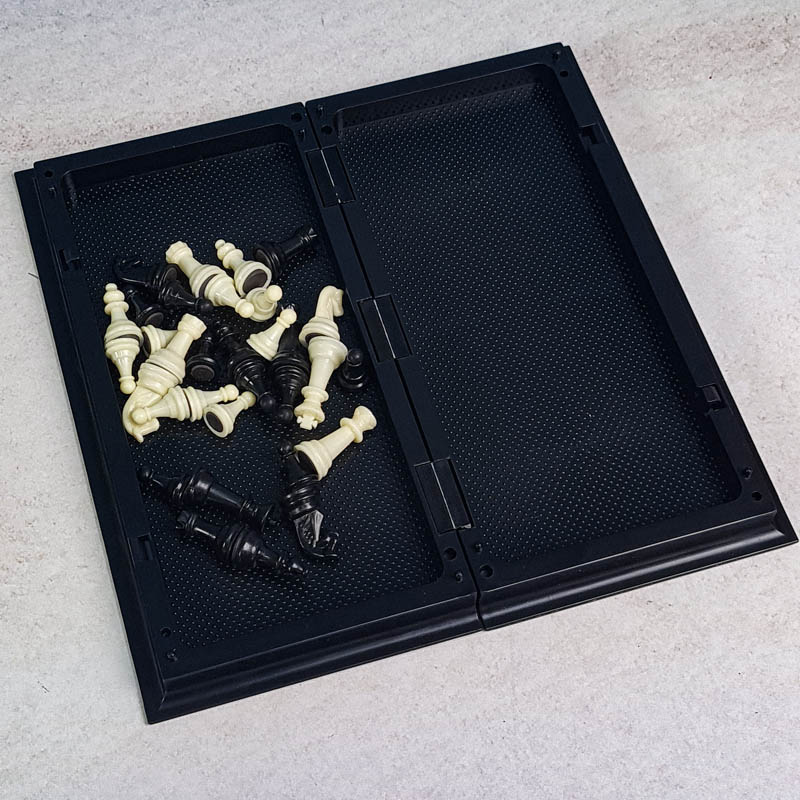 اسباب بازی شطرنج جیبی مگنتی مناسب برای سنین سه سال به بالا می باشد و تا بزرگسالی نیز مورد توجه و استقبال دوستداران آن قرار می گیرد. این محصول مغناطیسی می باشد، بدان معنا که صفحه شطرنج از یک ورق فلزی تشکیل شده است و در کف تمامی مهره ها اهنربایی وجود دارد که باعث می شود مهره ها بر روی صفحه شطرنج بچسبند. همچنین صفحه بازی این شطرنج های مغناطیسی از وسط خم میشود و میتوان مهره ها را درون آن قرار داد که برای حمل آن بسیار مناسب می باشد.