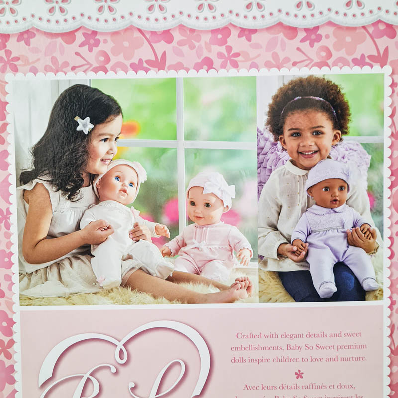 عروسک دخترانه نوزادی لباس یاسی BABY SO SWEET با موها و پیراهن قشنگش منتظره تا دوست و همبازی شما بشه. عروسک دخترانه با ارتفاع 32 سانتیمتر با دست و پای قابل حرکت و برای کودکان بالای 3 سال هدیه ای زیباست و برای تقویت نقش آفرینی در کودک ایده آله!