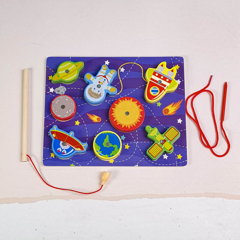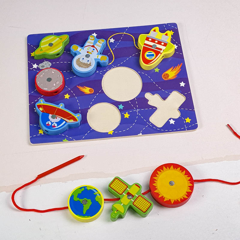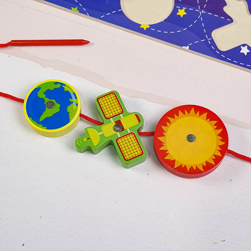 پازل چوبی جاگذاری مگنتی مدل فضانورد، یک اسباب بازی فکری محبوب و چالش برانگیز برای کودک است. پازل چوبی کودک فرصتی را فراهم میکند تا وی برای دستیابی به یک هدف تلاش کرده تا به سرانجام برسد. این پازل چوبی جاگذاری برای آموزش رنگ ها و همچنین تقویت مهارت دست ورزی کودک، یک اسباب بازی آموزشی مناسب و کاربردی است. جورچین و پازل چوبی برای کودکان بسیار جذاب است و باعث توسعه توانایی های حرکتی و هماهنگی چشم و دست کودک نیز می شود. همچنین این پازل چوبی دارای قلاب و گیره های مگنتی است که با کمک آن می توان قطعات چوبی را گرفت و همینطور با کمک نخ و سوزن این قطعات چوبی را نخ کشید. این پازل کودکانه با طرح فضانورد یک هدیه عالی برای کودکان بالای 18 ماه میباشد. این پازل کودک انتخابی عالی برای افرادی است که به اسباب بازی چوبی و اسباب بازی فکری علاقه مند هستند.