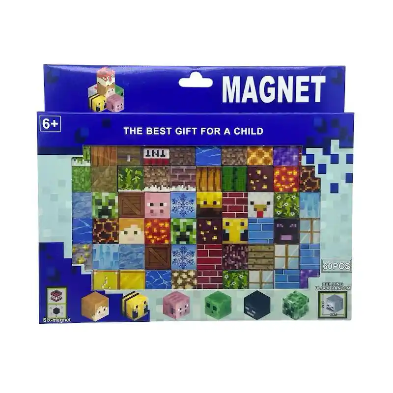 بلوک مغناطیسی ماینکرفت 60 تکه شامل 60 بلوک ساختنی ماینکرفتی است. ابعاد مکعبها هر کدام 2 سانتیمتر است. این مجموعه شامل مکعبهایی با طراحی الگو مختلف مانند زمین، چوب، آتش و...است، که به سازه شما تنوع ساخت خلاقانه بیشتری میدهد.