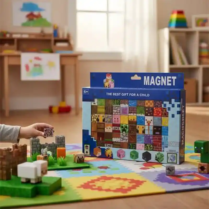 دنیای مغناطیسی خود را بسازید. بلوکهای ساختنی مغناطیسی ماینکرفت برای طرفداران بازی آنلاین ماینکرفت یک بازی هیجان انگیز است. با این بلوک ها میتوانید سرزمین ماینکرفتی خود را در واقعیت بسازید. این مجموعه دارای 60 تکه بلوک مگنتی است. مکعبها و صفحات به یکدیگر میچسبند و نیازی به چسب و ابزار ندارد. بلوکهای مغناطیسی برای کودکان از ساخت و سازهای ساده تا چالشبرانگیز به همراه دارد. اسباببازیهای ساختنی STEM که به تقویت تخیل کودکان کمک میکند. بلوک مغناطیسی ماینکرفت 60 تکه به کودکان در درک عمیقتری از ساختار سه بعدی هدیه میدهد. بلوکهای مغناطیسی ماینکرفت از جنس پلاستیک با کیفیت ABS در بیرون و آهنرباهای داخلی هستند و هیچ مواد شیمیایی و سمی در ساختار خود ندارد. بلوکهای مغناطیسی دارای لبههای گرد و اندازه مناسب است که به دستهای کوچک آسیبی وارد نمیکند.