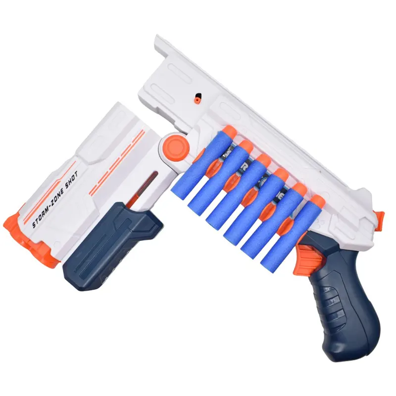 تفنگ اسباب بازی کودک قابلیت پرتا تیر در برد 1 متر را دارد. تیر ها را درون خشاب قرار دهید و ضامن تفنگ را بکشید و آن را در حالت تیر بار قرار دهید با هر بار شلیک 1 تیر از این بلستر به صورت خودکار شلیک میشود. این تفنگ اسباب بازی شامل 12 عدد تیر فومی نرم EVA است. تیرها برای کودکان ساخته شده اند که سبک وزن هستند و به کسی آسیب نمی رسانند و یک انتخاب ایده آل برای کودکانی است که عاشق بازی های جنگی با اسلحه در داخل خانه، حیاط و طبیعت هستند. توجه کنید که به سمت صورت شلیک نکنید و برای کودکان زیر 6 سال بهتر است زیر نظر بزرگسالان اسلحه بازی کنند. این بلستر به شما این امکان را می دهد که از فاصله دور یا در فاصله نزدیک به حریفان شلیک کنید. تفنگ اسباب بازی کودک ساخته شده از پلاستیک با درجه کیفی بالا و فاقد مواد سمی است و برای نقش بازی کودکان و بازیهای بیرون از خانه، بازی وانمودی بسیار ایده ال است که مهارتهای حرکتی، تخیل و خلاقیت کودکان را توسعه میدهد.